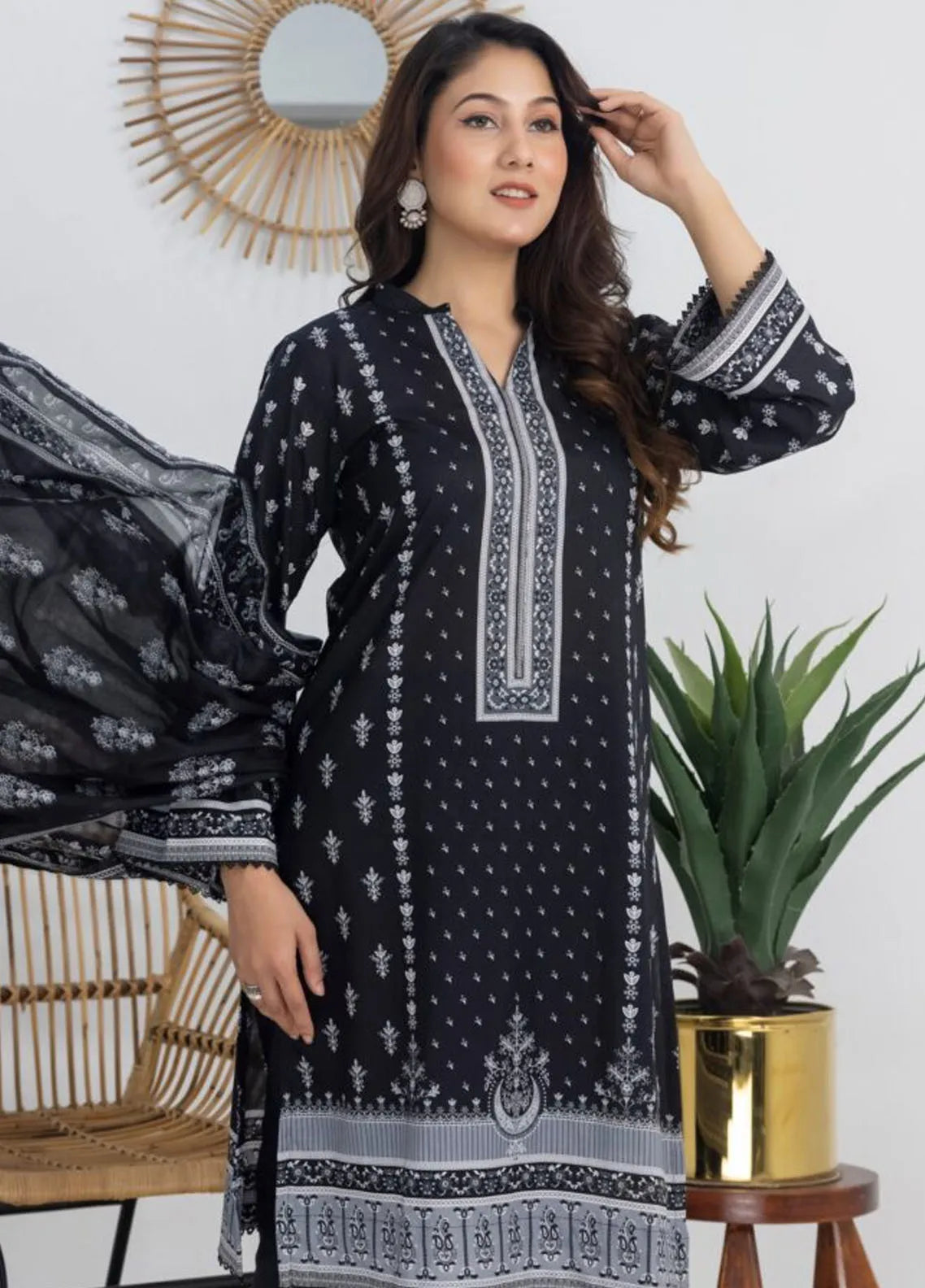 3 Piece Printed Unstitched Suits from Salina by Regalia Textiles Black And White Collection 2024 Chapter-3
