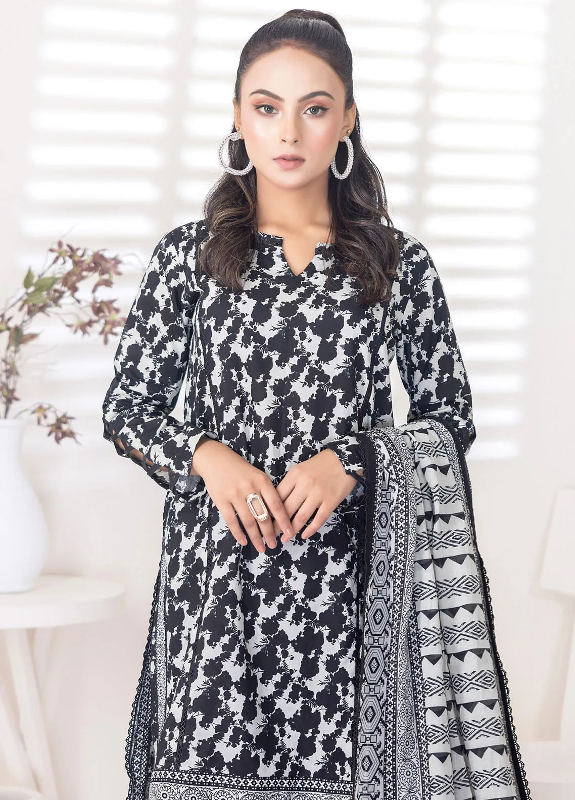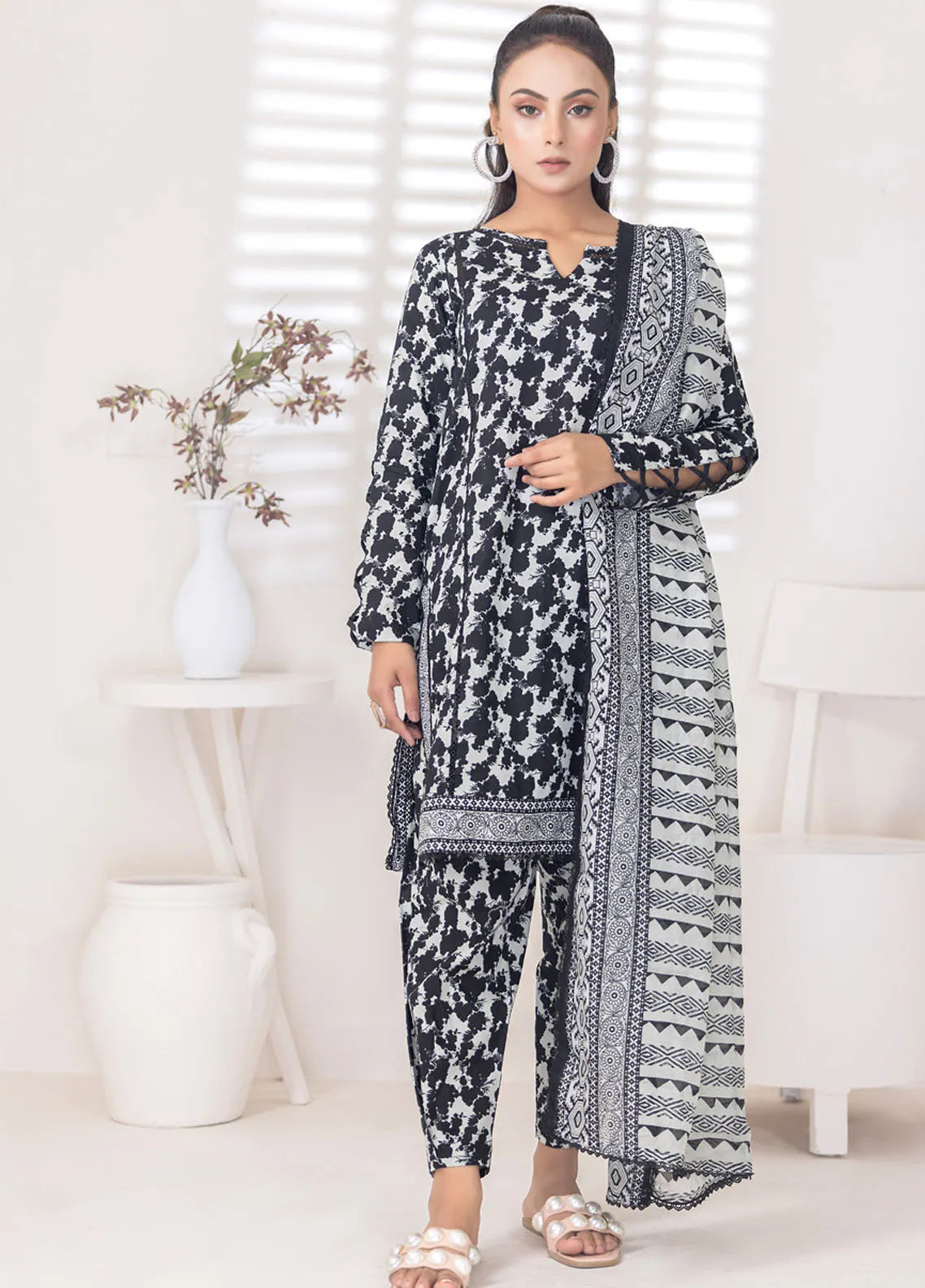 3 Piece Printed Unstitched Suits from Salina By Regalia Textiles Black And White Collection 2024 Chapter-1
