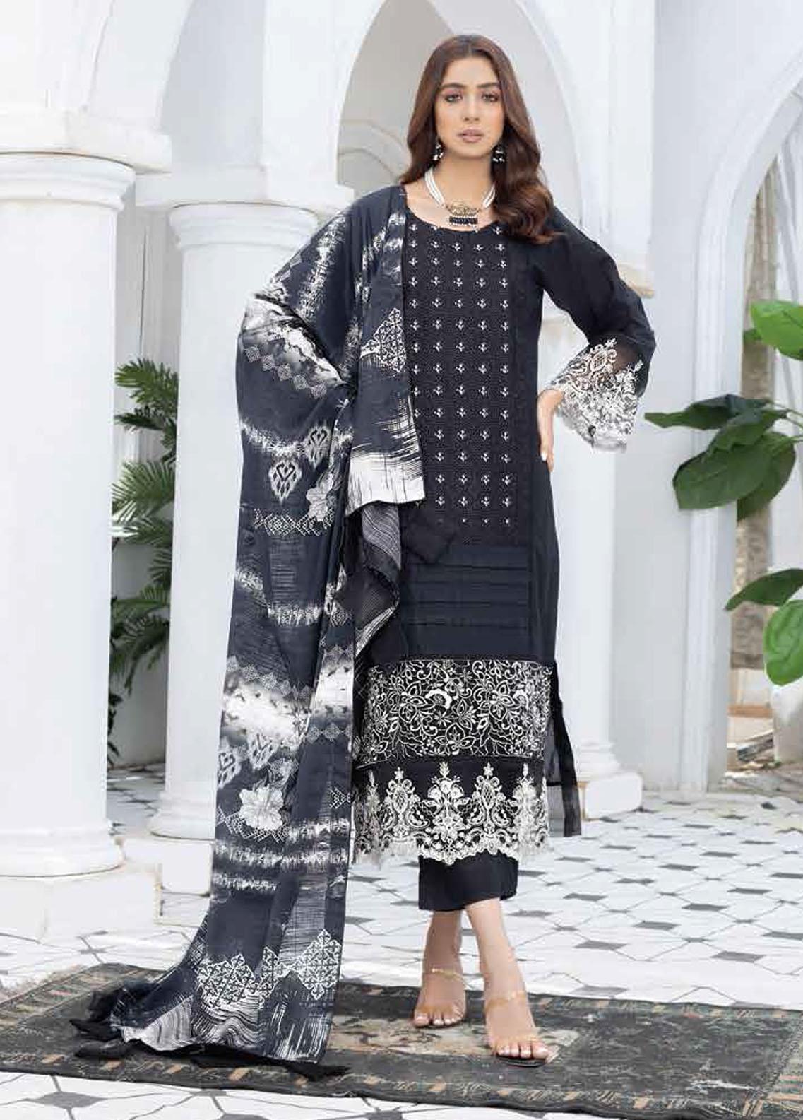 Aafreen By Riaz Arts Embroidered Lawn Suits Unstitched 3 Piece RA22BW 01 - Black & White Collection