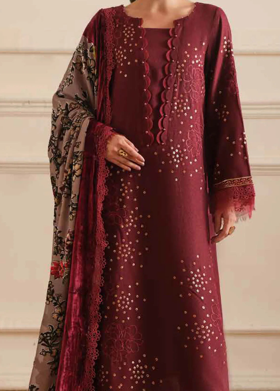 3 Piece Embroidered Unstitched Suits With Velvet Palachi Shawl from Tehzeeb By Riaz Arts Unstitched Embroidered Winter Collection 2024