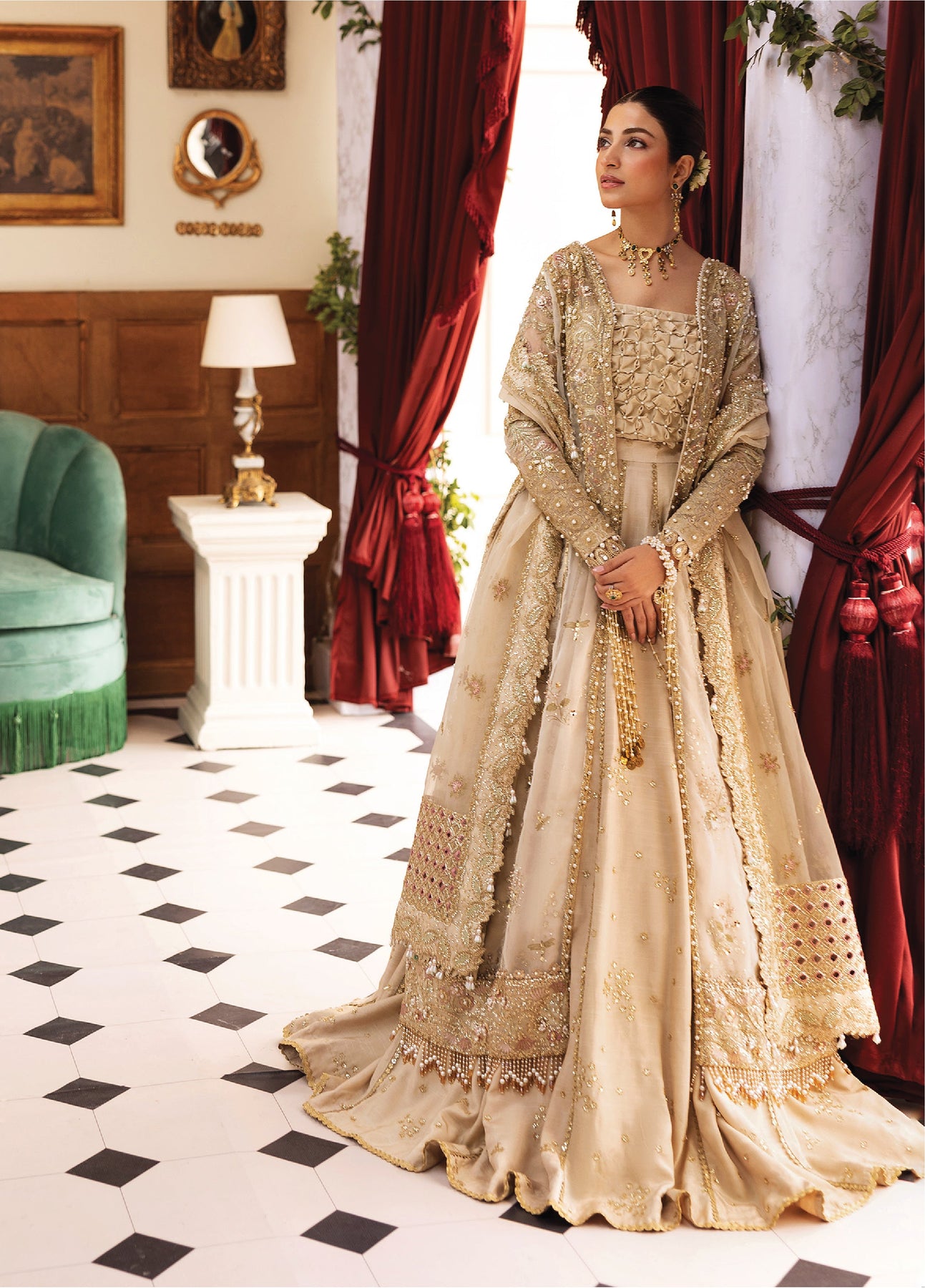 Siraa by Sadaf Fawad Khan Unstitched Suits 3 Piece SDF25SF Ivory Celeste - Formals Collection