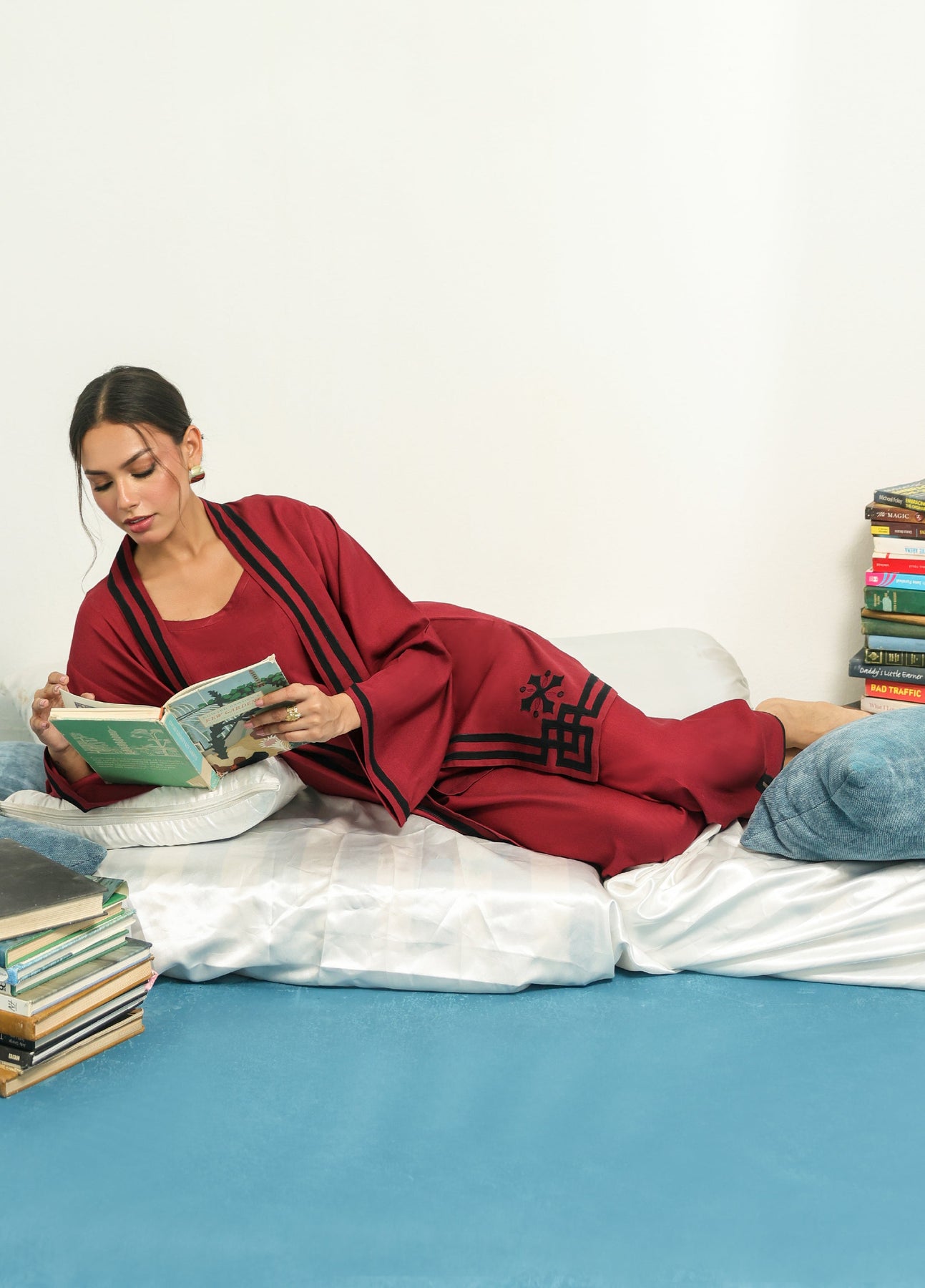 The fabric's substantial look and layering make this set an excellent choice for winter wear.