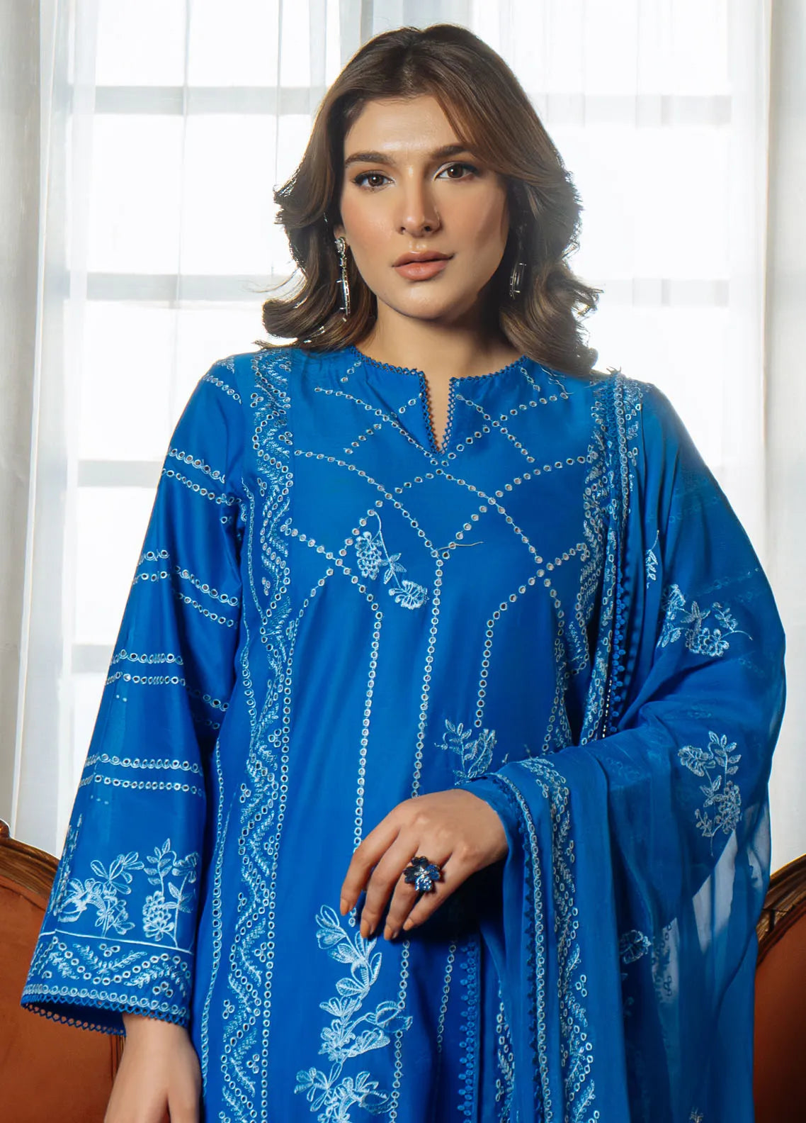 Sahar Embroidered Chikankari Suit Unstitched 3 Piece CK-25-V1-06 Moroccan Blue - Festive Collection