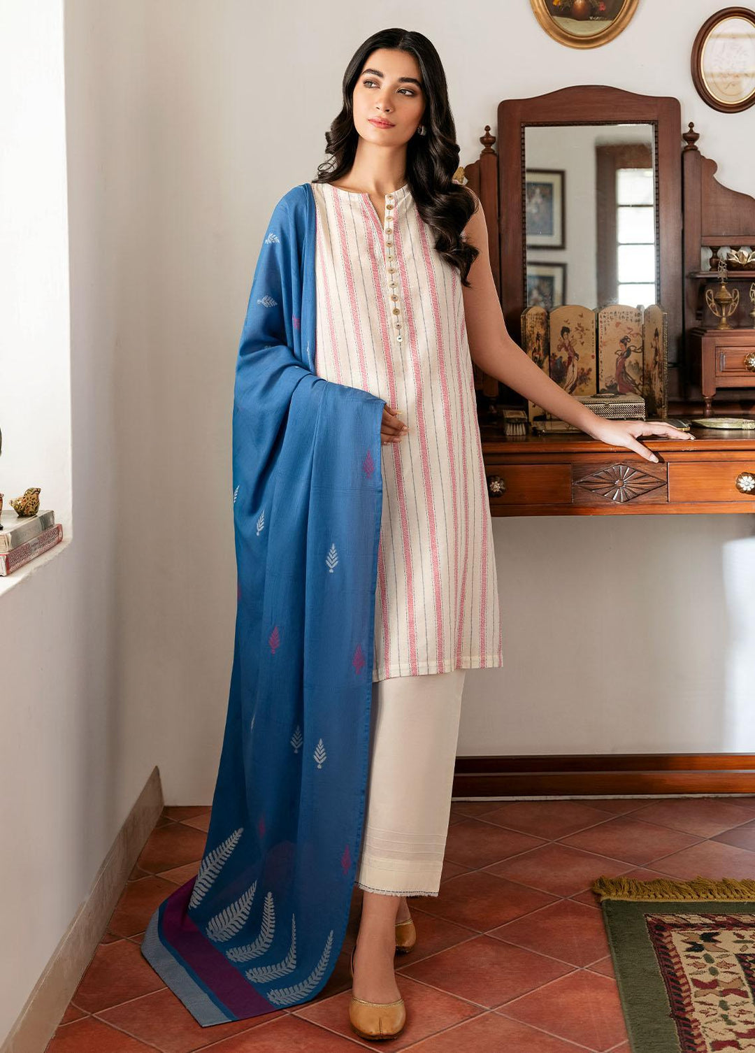 Sahar Pret Casual Cotton Jacquard 2 Piece Suit SSMCS-RR-05 Snowfall