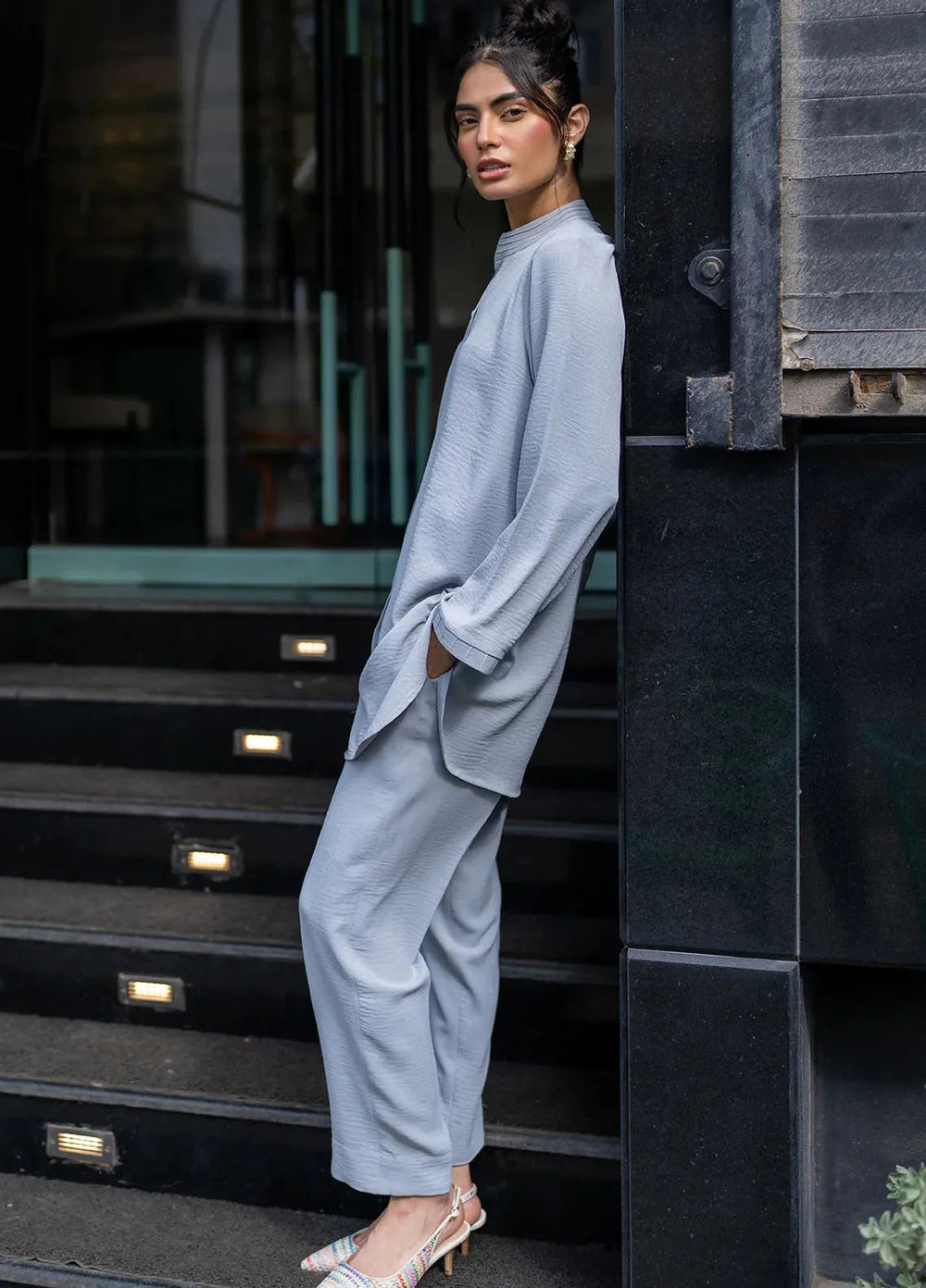 Sahar Pret Casual Cotton Crepe 2 Piece Suit SSCR-RK-03 Urban Ash