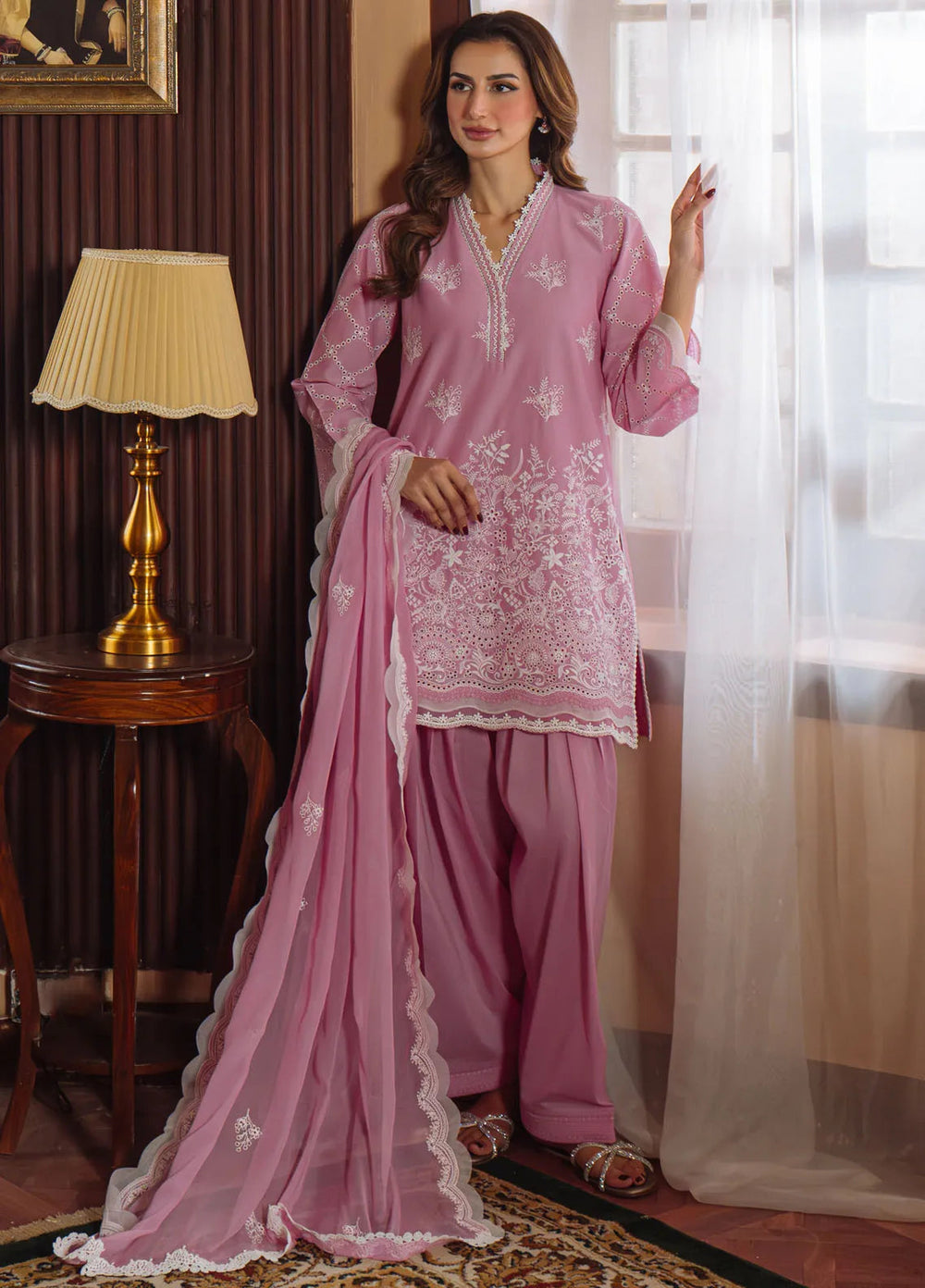 Sahar Embroidered Chikankari Suit Unstitched 3 Piece CK-25-V1-03 Pastel Rose - Festive Collection