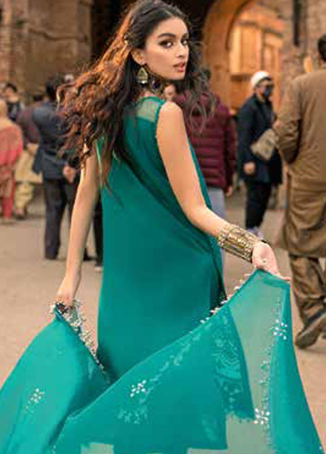 Embroidered Lawn shirt with Mirror work