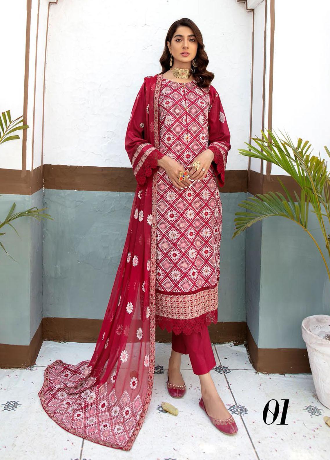Blossom by Riaz Arts Embroidered Lawn Suits Unstitched 3 Piece RA22BL 01 - Exclusive Collection
