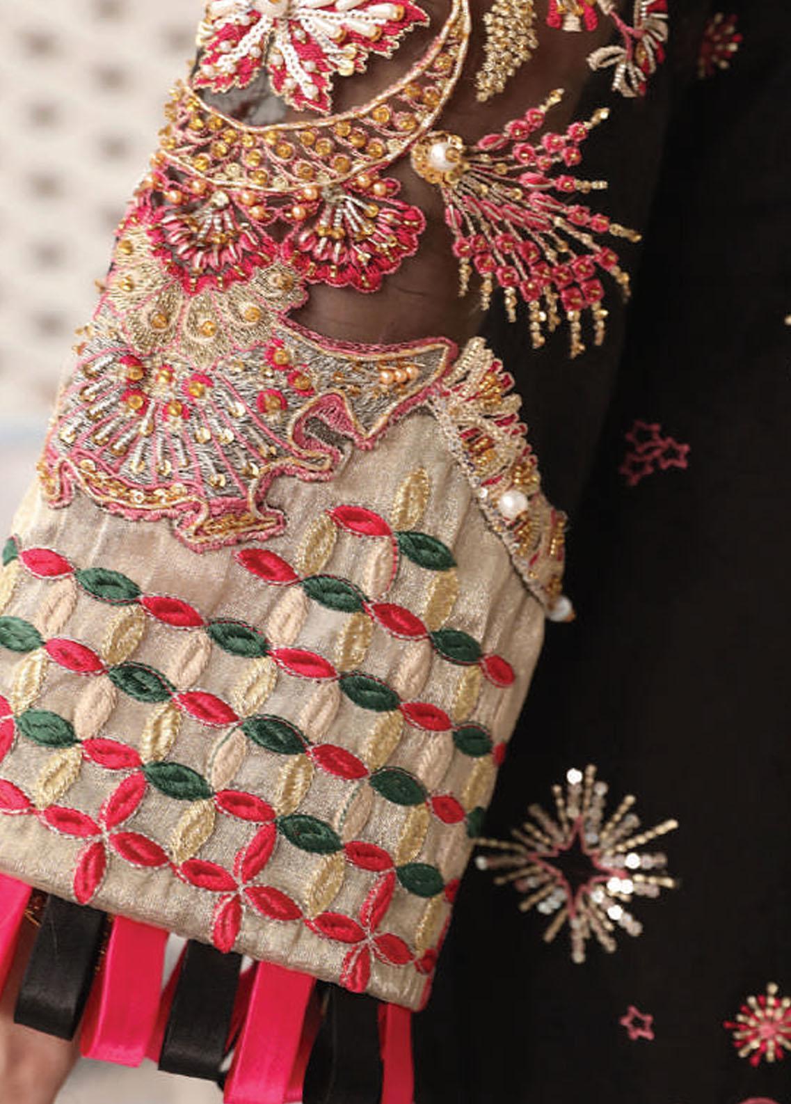 Celebrations by Elaf Embroidered Organza Suits Unstitched 3 Piece EF22C ECC-8 Black Diamond - Luxury Collection