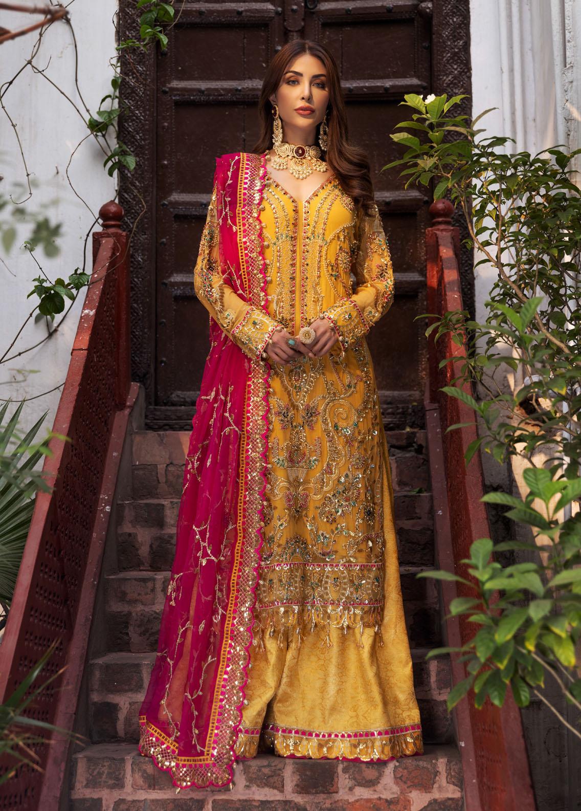 Mahermah By Emaan Adeel Embroidered Chiffon Suits Unstitched 3 Piece EA22-M2 MB-204 - Bridal Collection