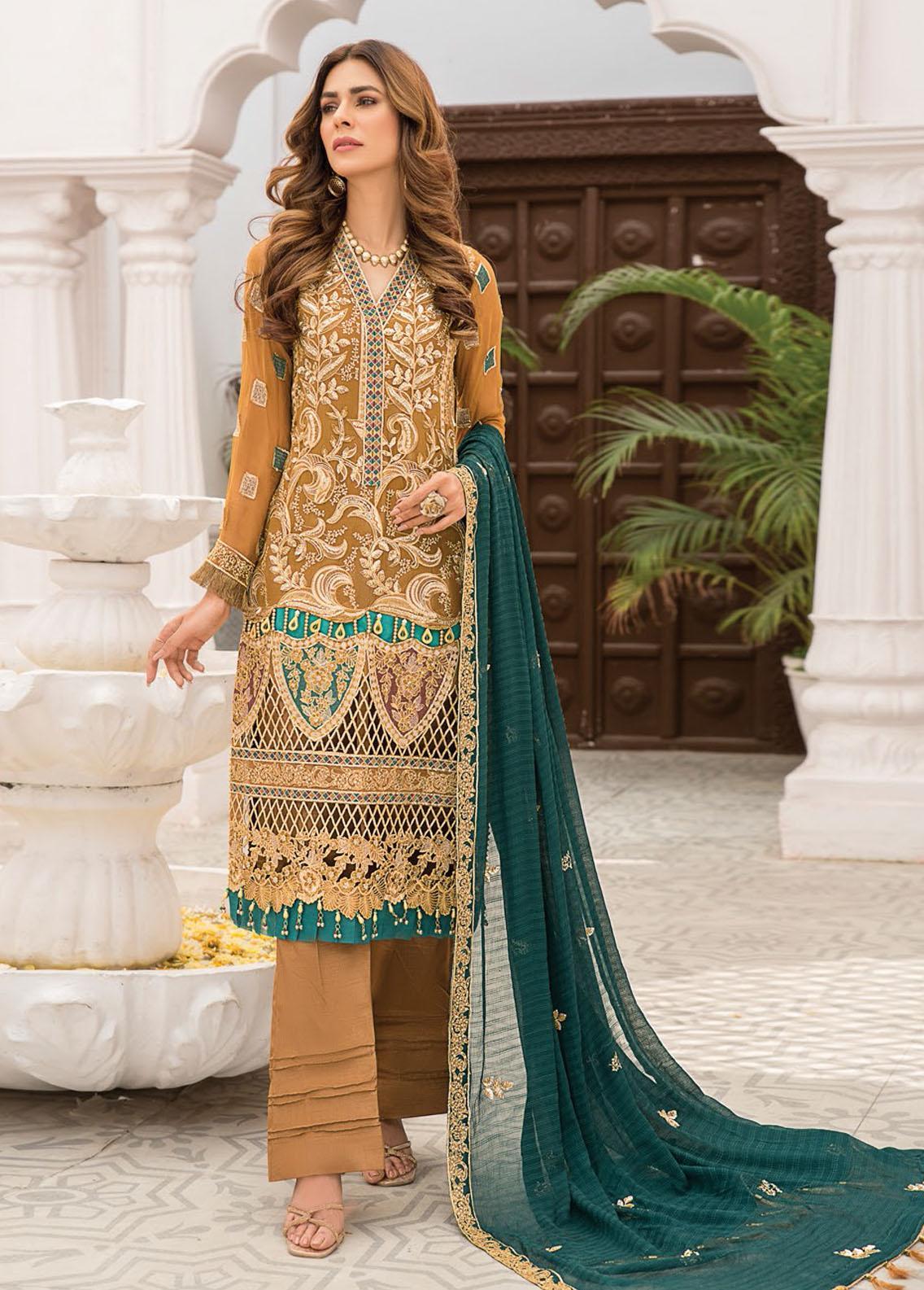 Maryam's Embroidered Chiffon Suit Unstitched 3 Piece MRM22-L25 Dress-34 - Luxury Collection