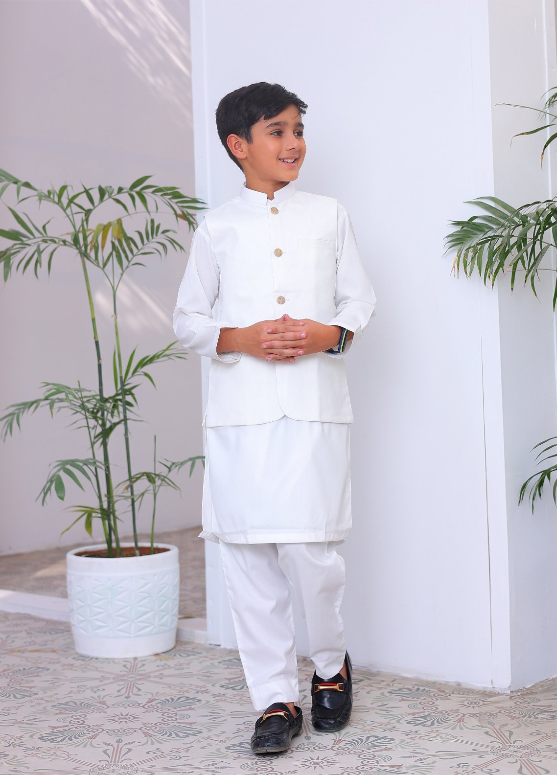 Plain Kids Stitched Kurta Trouser N Waistcoat