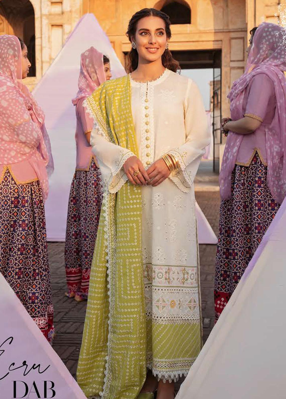 Mehrbano By Cross Stitch Embroidered Lawn Suits Unstitched 3 Piece CS22ML ECRU DAB - Premium Collection