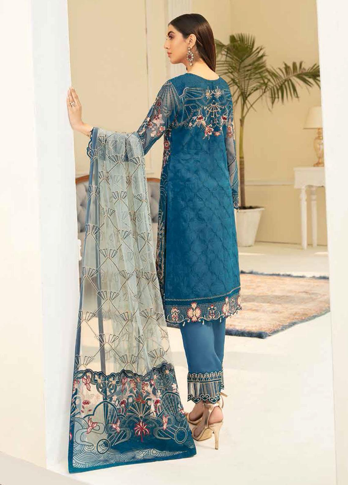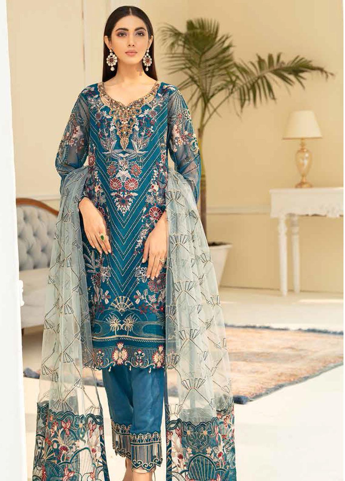 Minhal by Ramsha Embroidered Organza Suits Unstitched 3 Piece RSH22-M5 M-504 - Luxury Collection