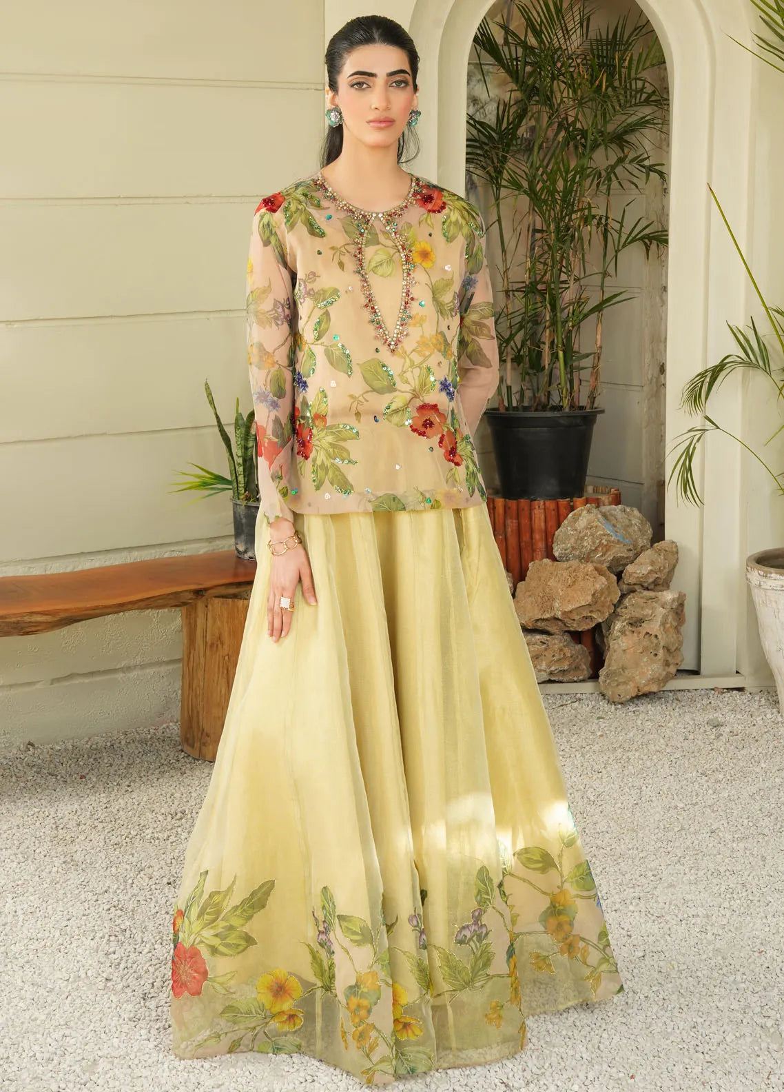 Stitch Vibes Pret Printed Zari Net 3 Piece Suit Ayla Verde