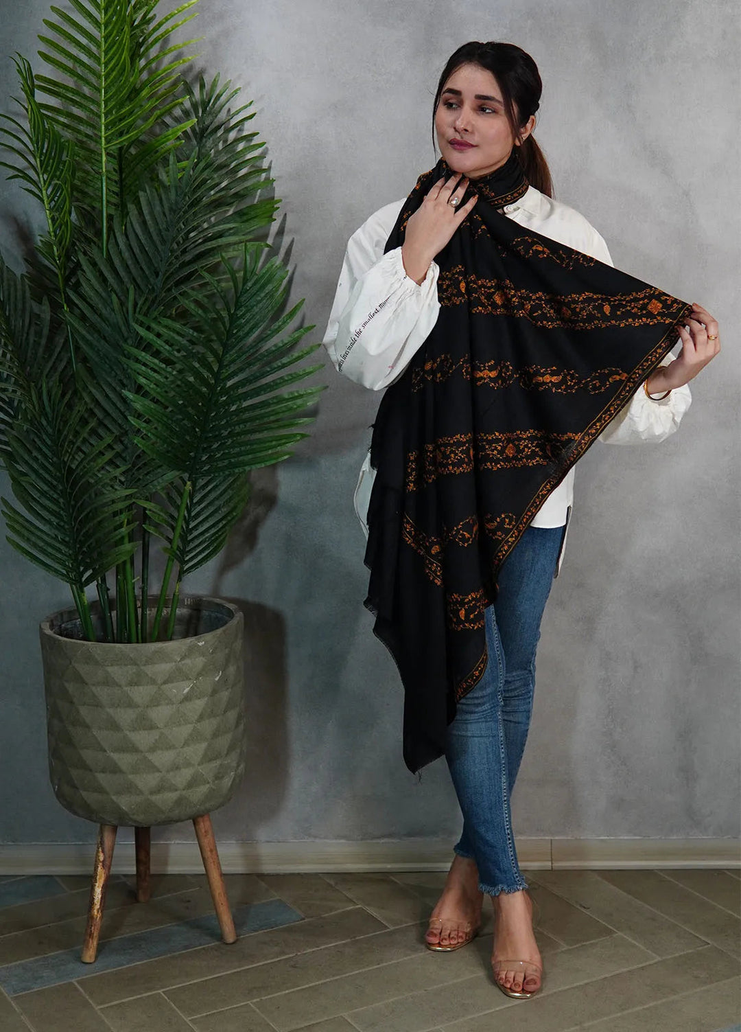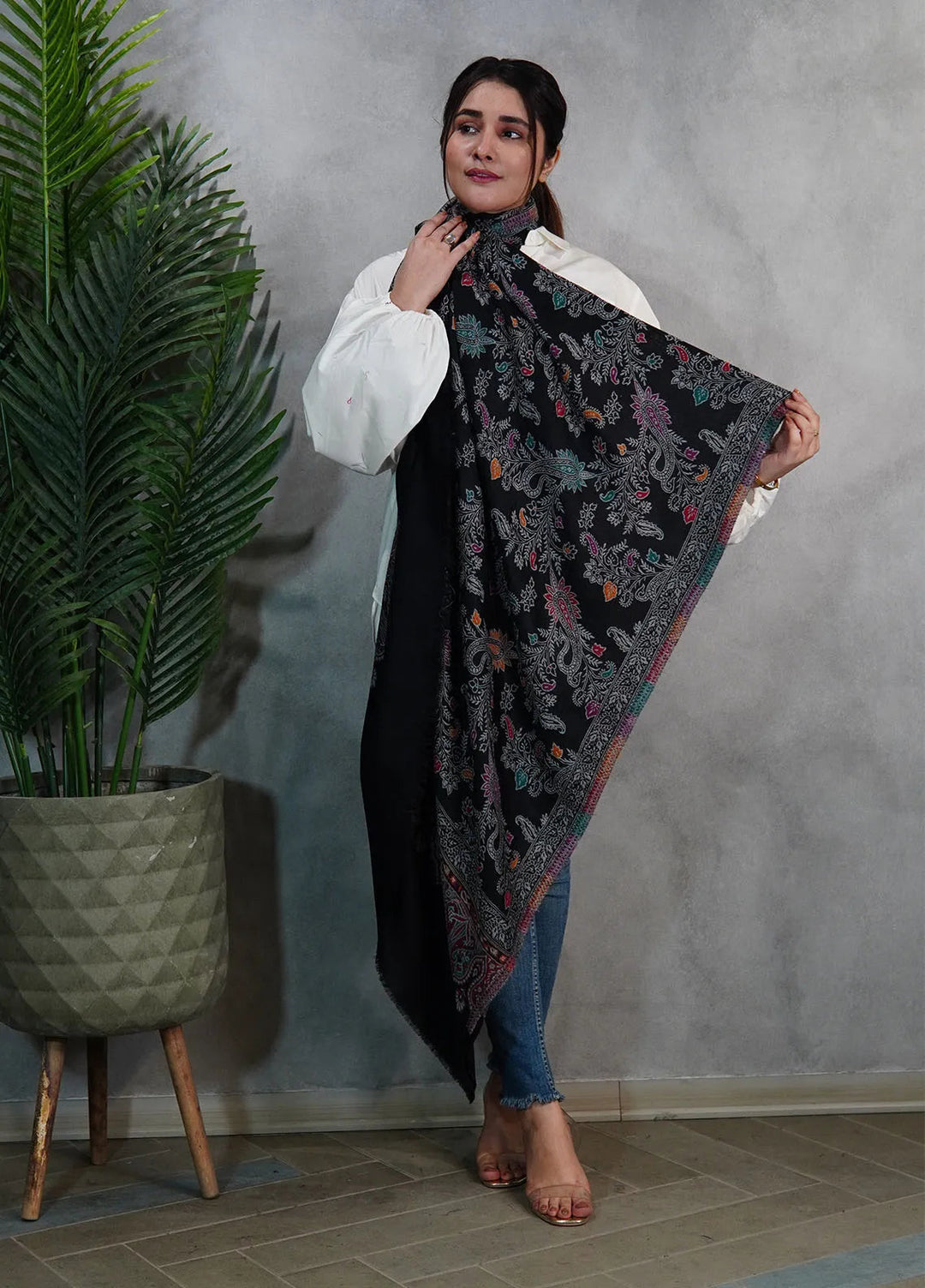 Sanaulla Exclusive Range Pashmina Shawl KPS D-39 Black - Winter Collection