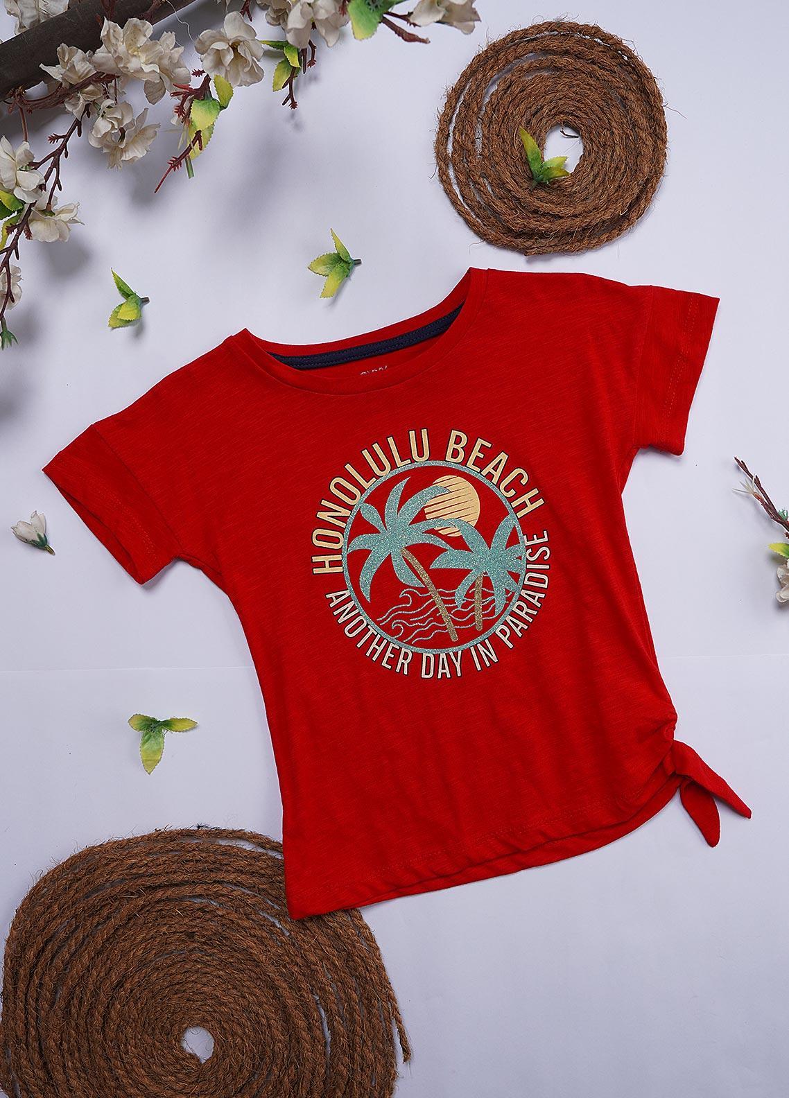 Sanaulla Exclusive Range Cotton Casual T-Shirts for Girls - T-Shirt 2847-3 Red