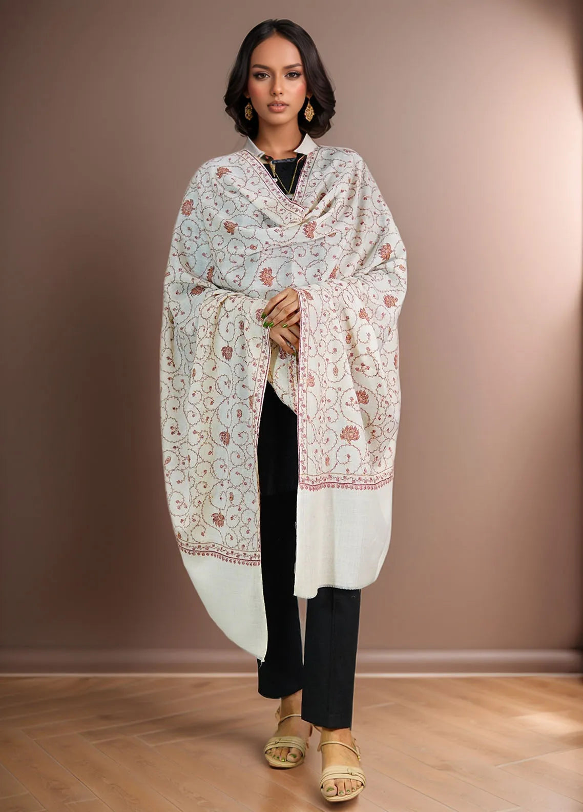 Sanaulla Exclusive Range Pashmina Shawl D-15 Cream - Winter Collection