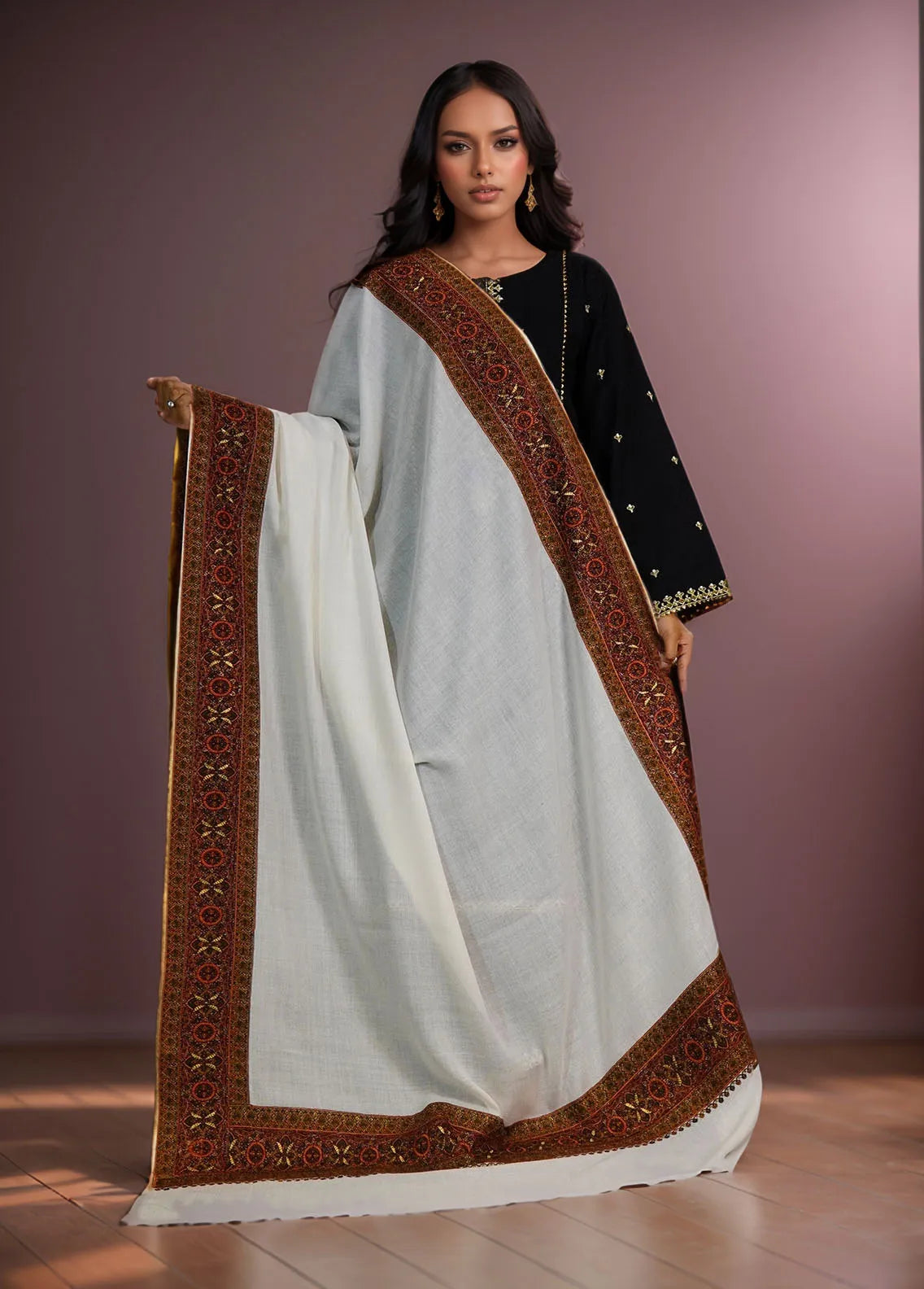Sanaulla Exclusive Range Pashmina Shawl D-17 White - Winter Collection