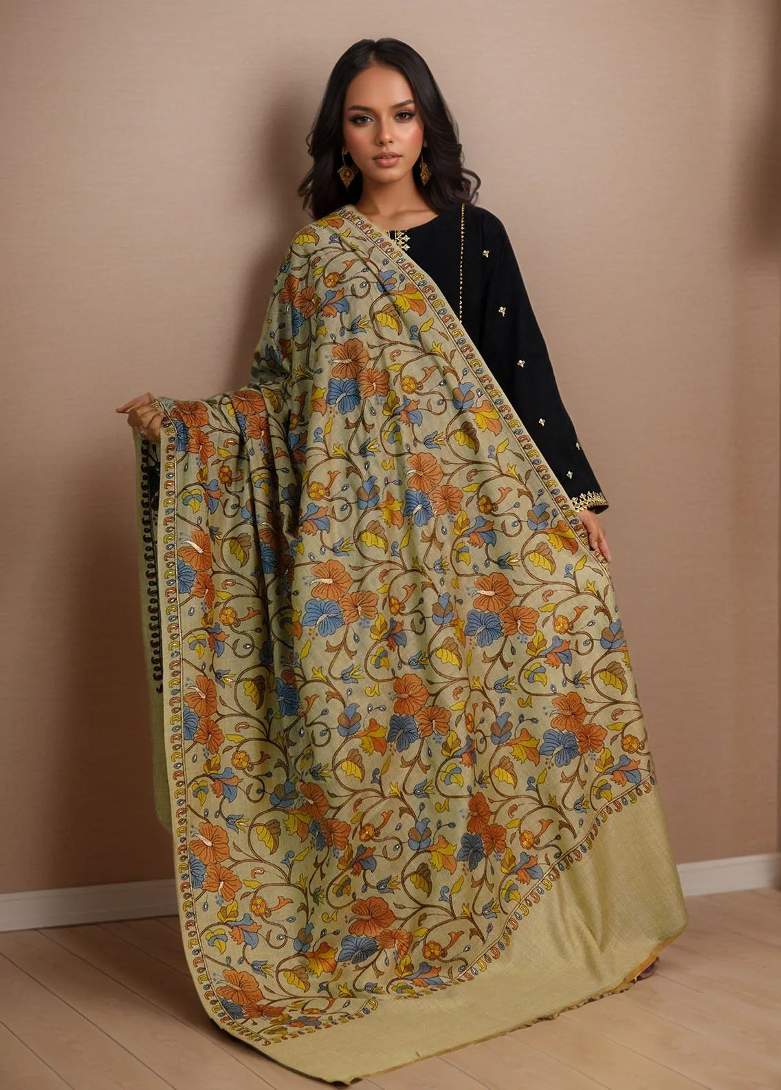 Sanaulla Exclusive Range Pashmina Shawl D-47 Light Brown - Winter Collection