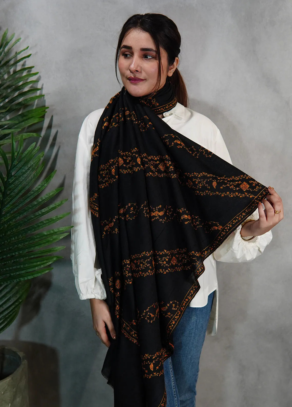 Sanaulla Exclusive Range Pashmina Shawl KPS D-39 Black - Winter Collection