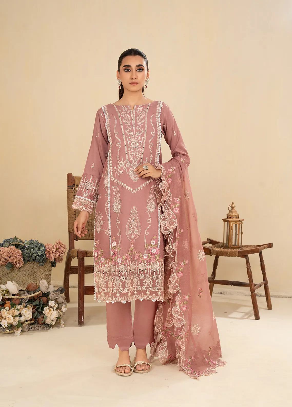 Sara Jahan Pret Embroidered Cotton 3 Piece Suit Rosewood