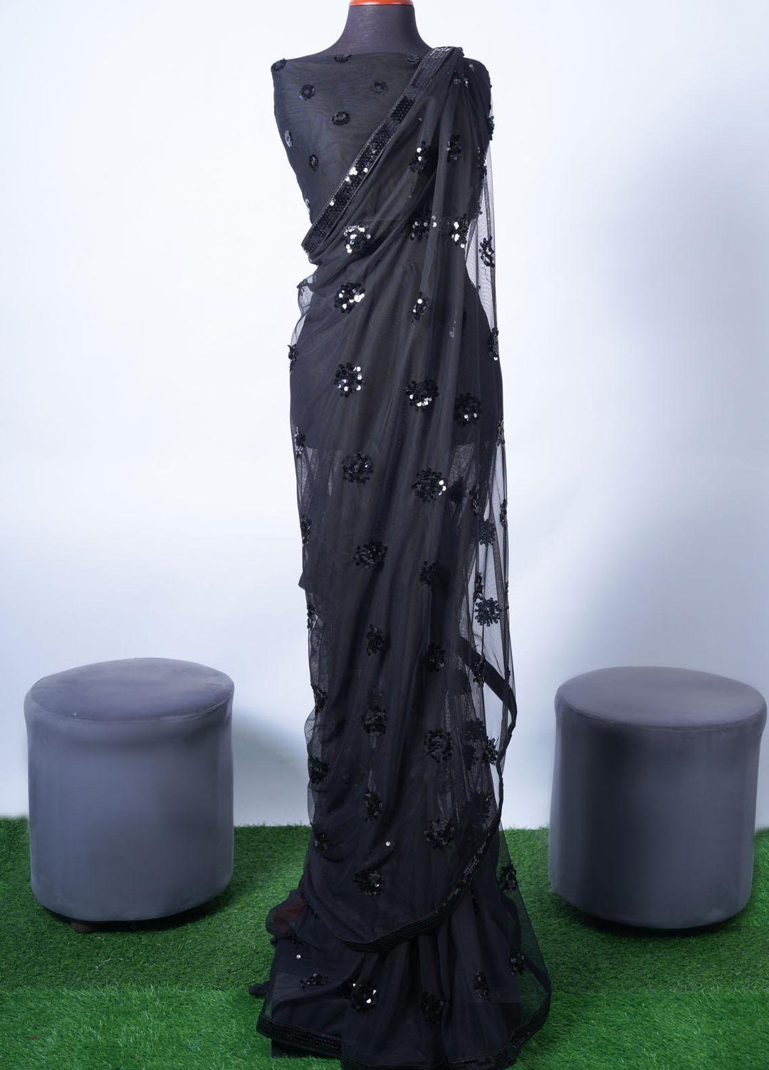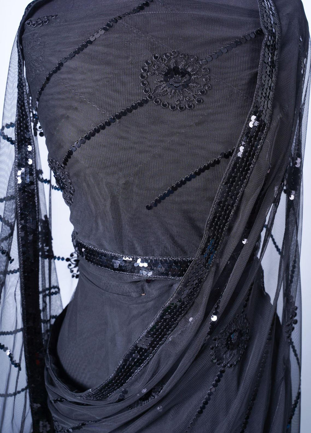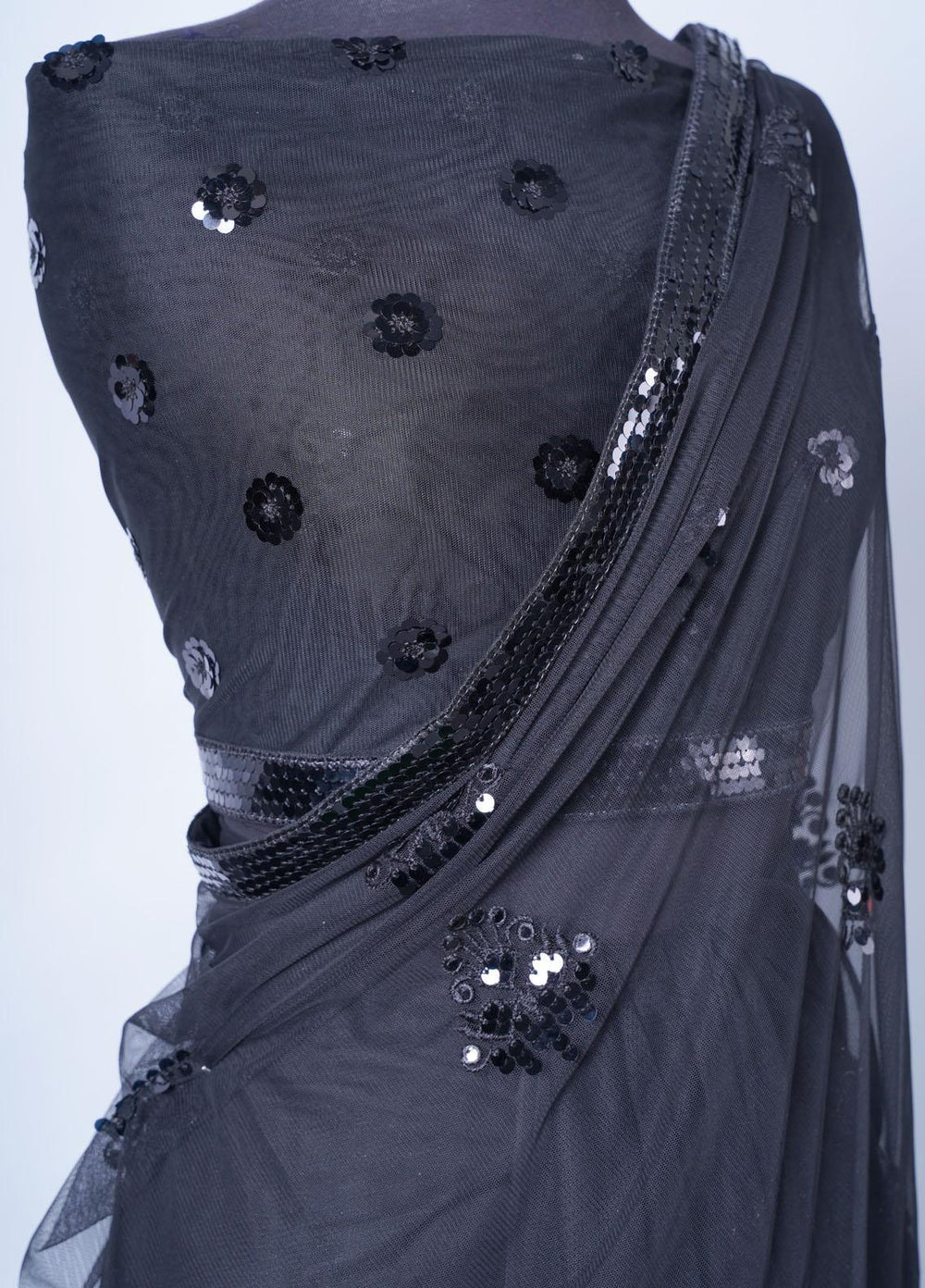 Vibgyor Fashion Embroidered Net Unstitched Saree S2-C2-23U Sequin Black - Festive Collection