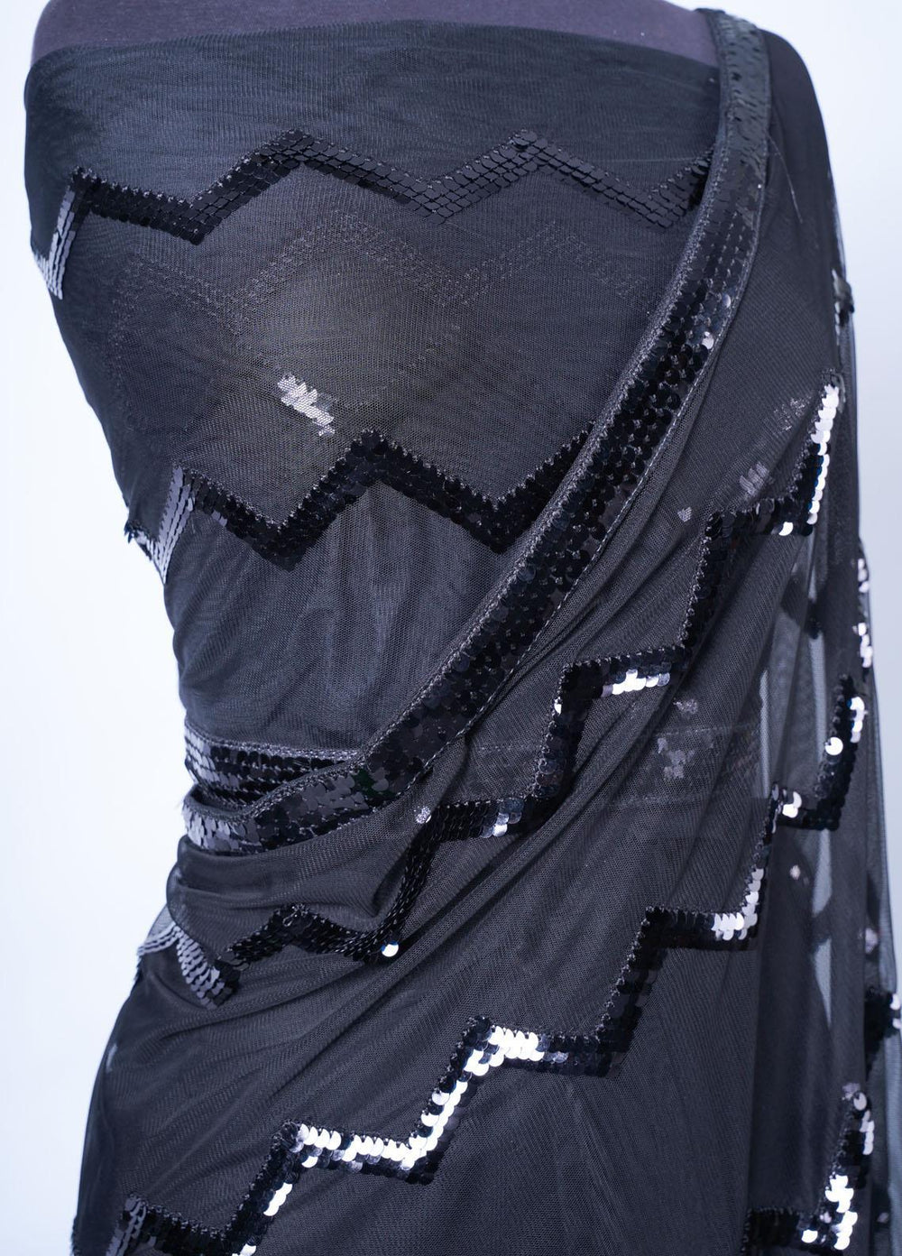 Vibgyor Fashion Embroidered Net Unstitched Saree S3-23U Chevron Black - Festive Collection