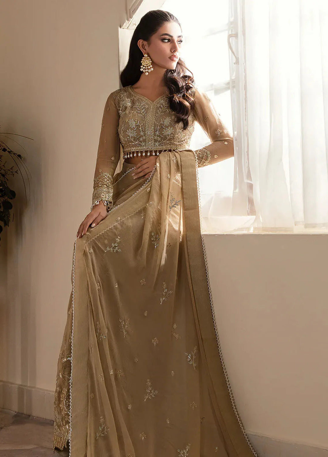 Zarposh Pret Embroidered Chiffon Mehru Saree