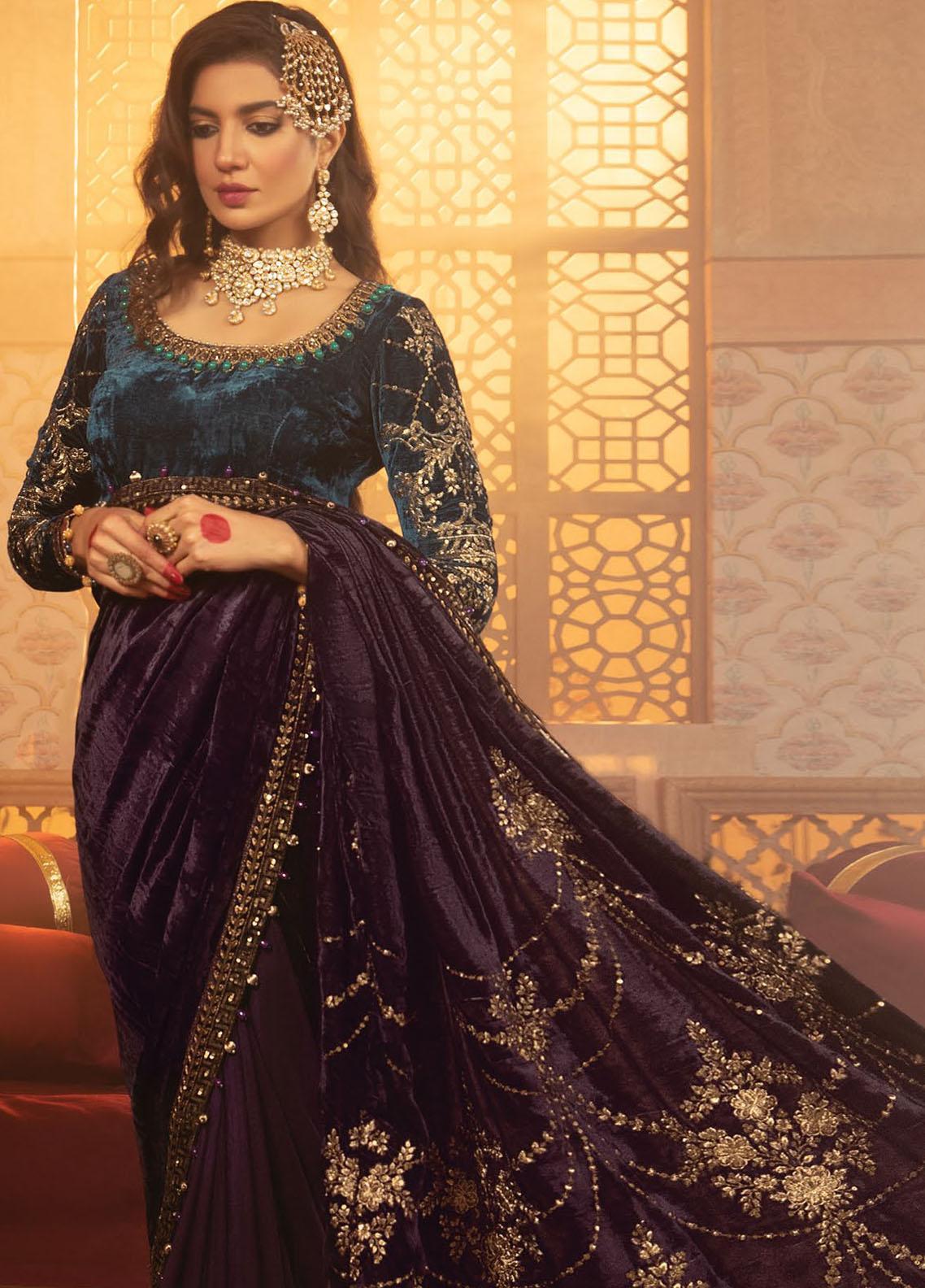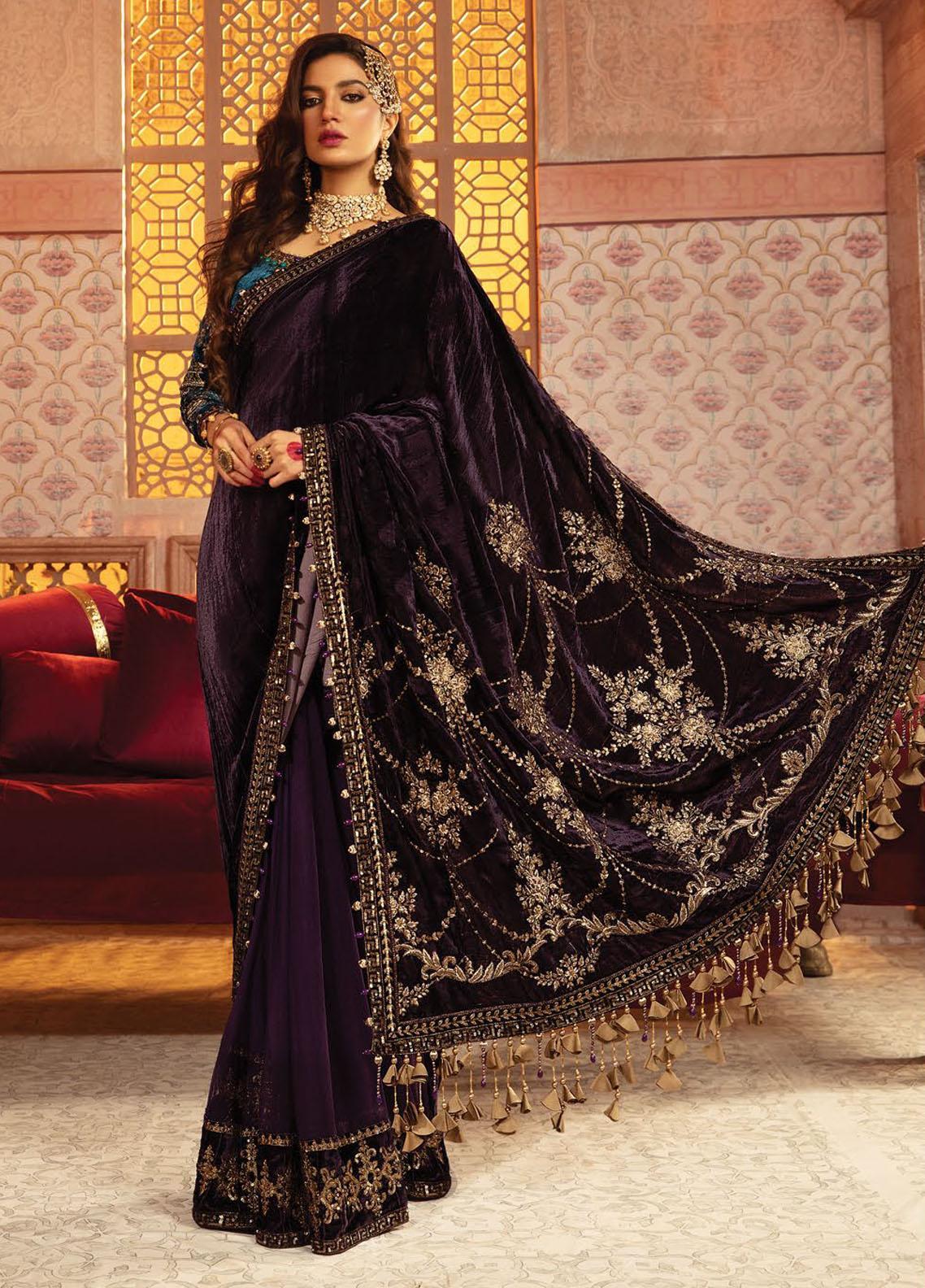 Maria B Embroidered Velvet Unstitched Saree MB21V D1 - Luxury Collection