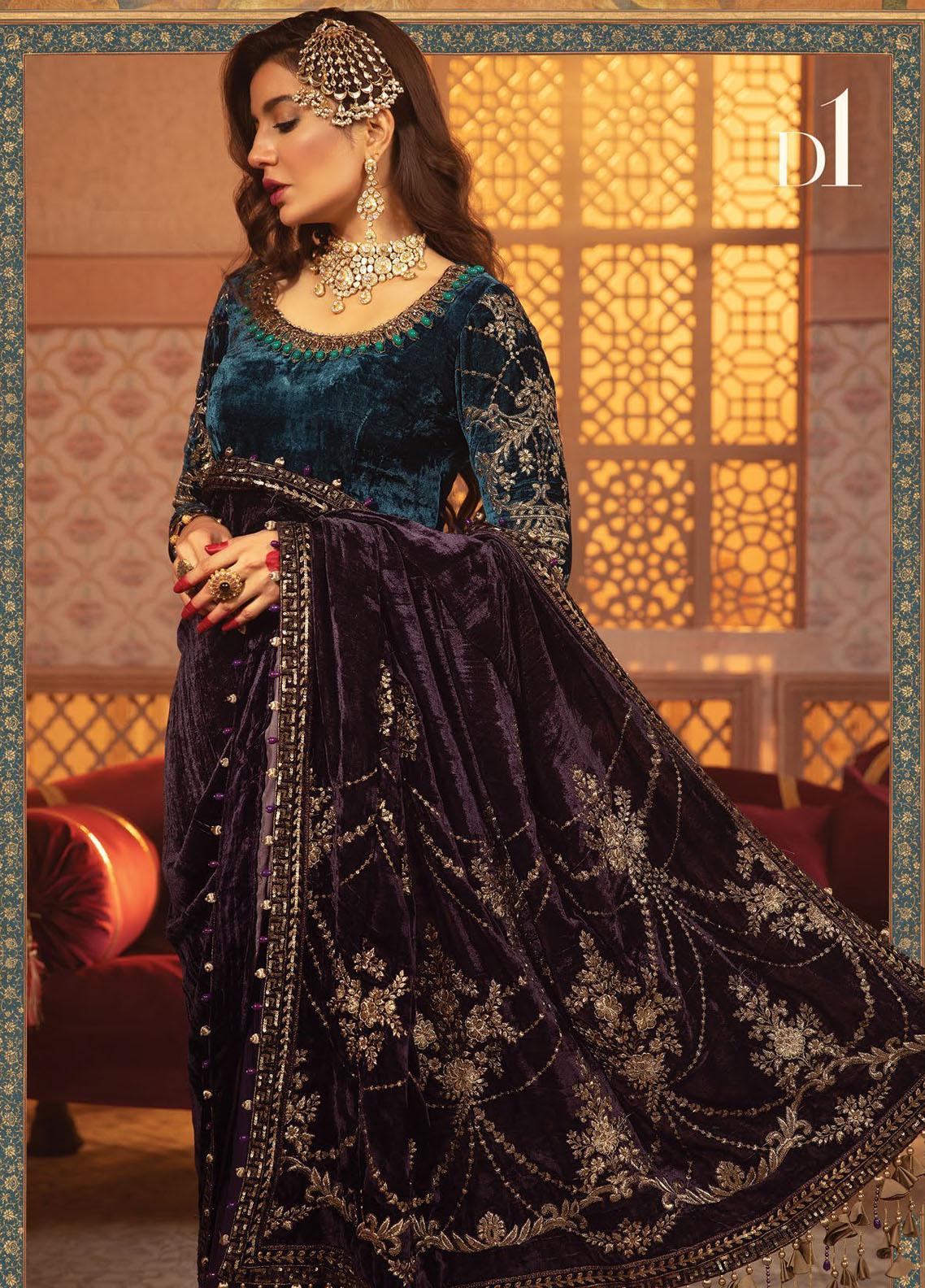 Maria B Embroidered Velvet  Unstitched Saree MB21V D1 - Luxury Collection