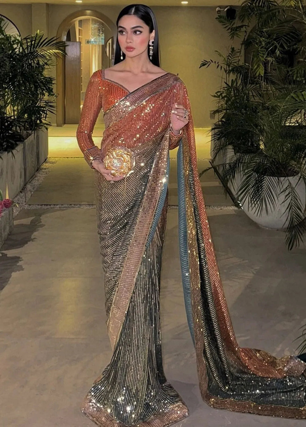 Aik Atelier Embroidered Chiffon Unstitched Saree D-07 - Festive Collection