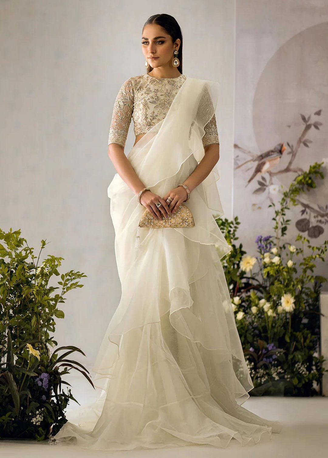 Aik Atelier Embroidered Chiffon Unstitched Saree D-01 - Festive Collection