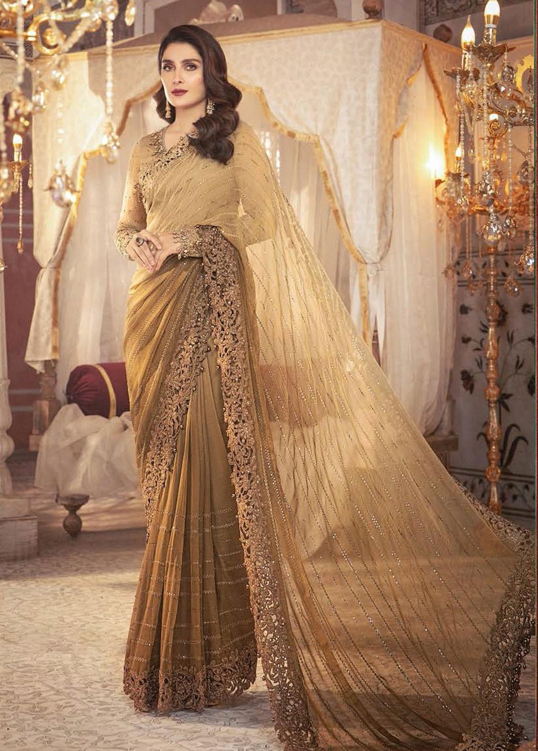 Mbroidered By Maria B Embroidered Unstitched Chiffon Chocolate Cappuccino Saree MB21WD D6 - Wedding Collection