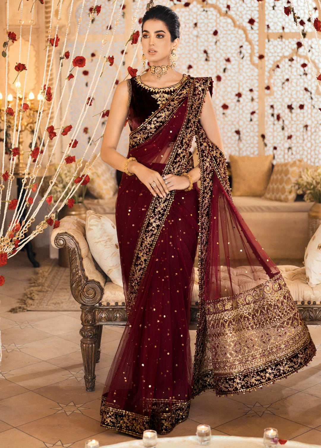 Noor by Saadia Asad Embroidered Velvet Saree Unstitched 3 Piece SA21WD D4 - Wedding Collection