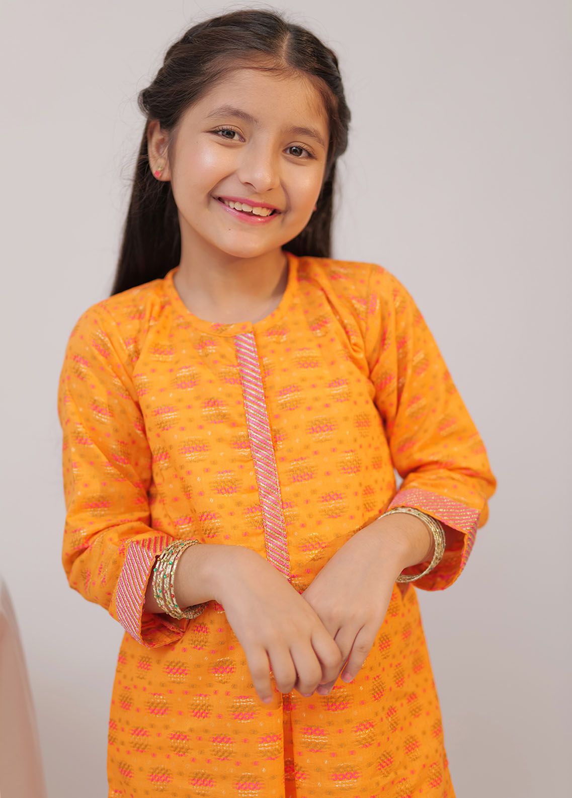 Vibrant A line jacquard shirt with neckline placket and central pleat on front and back Finished with contrasting border on neckline placket and sleeves Embellished with beads and tassel Paired with a stylized cuff shalwar br data mce fragment 1