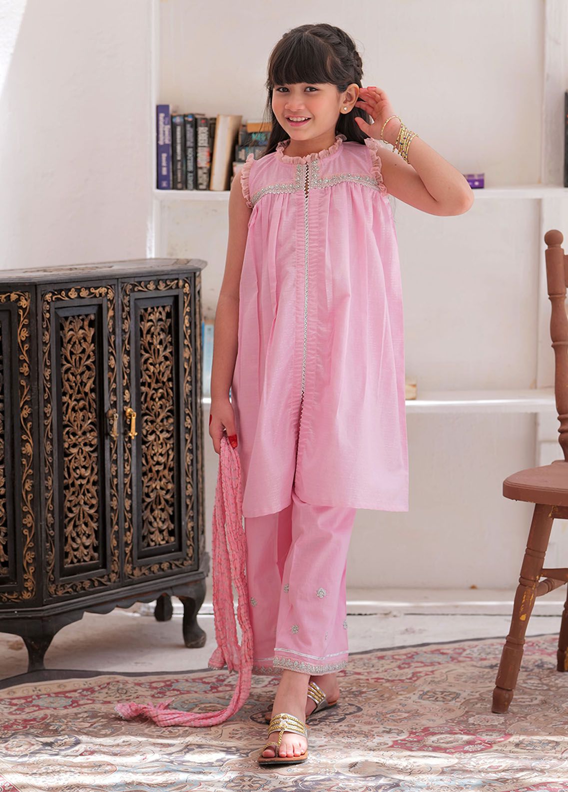 A line style shirt with gathers and embroidery around neckline and lace finishing on front slit and frill finishing around neckline and armhole paired with straight embroidered pants along with gotta finishing and mehsuri crushed duppatta br data mce fragment 1