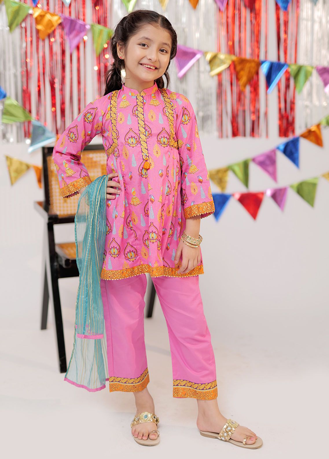 Senorita Cotton Casual 3 Piece Suit for Girls - KBD-02536-PNK/GLD