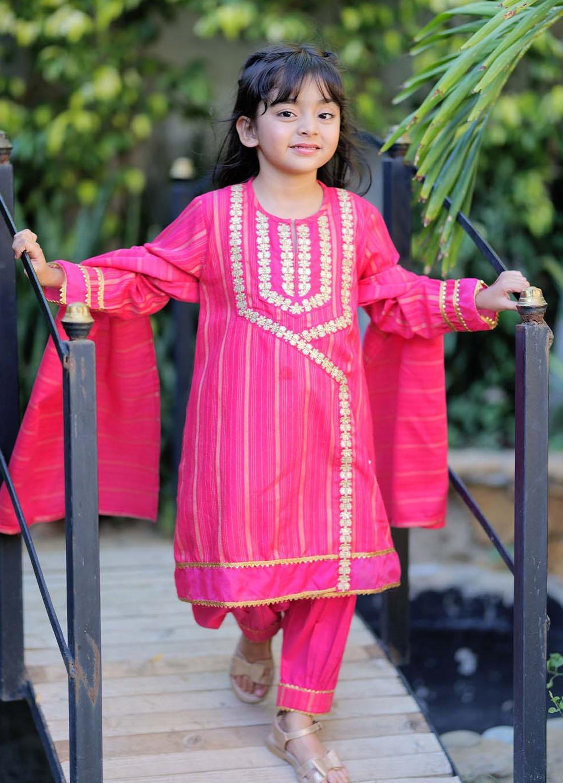 Senorita Cotton Pret 3 Piece Suit for Kids - KBD-02230-SPK/GLD