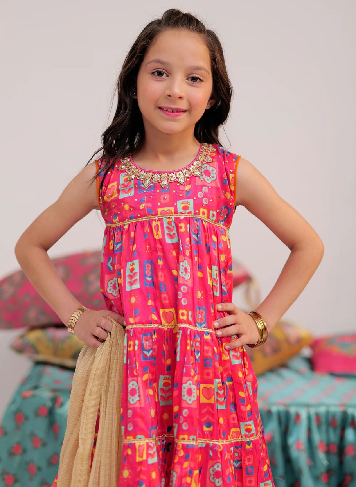 Layered gather body frock with fancy embroidery on body Finished with fancy lace Paired with stylish pleated cuff shalwar and contrasting fancy dupatta br data mce fragment 1