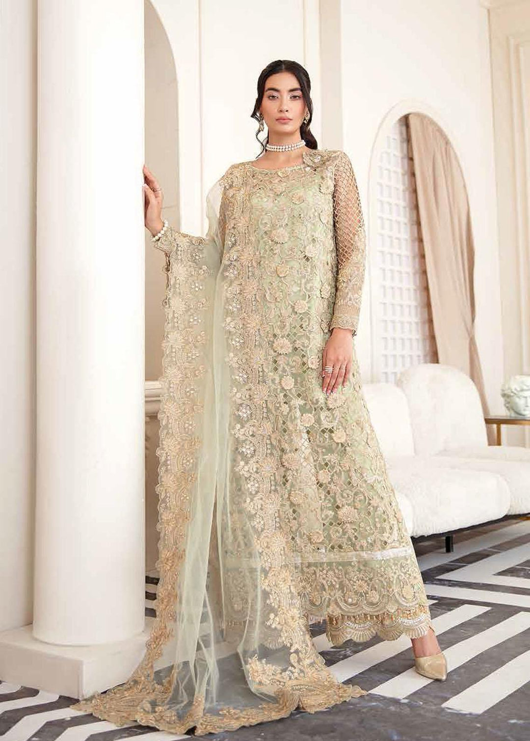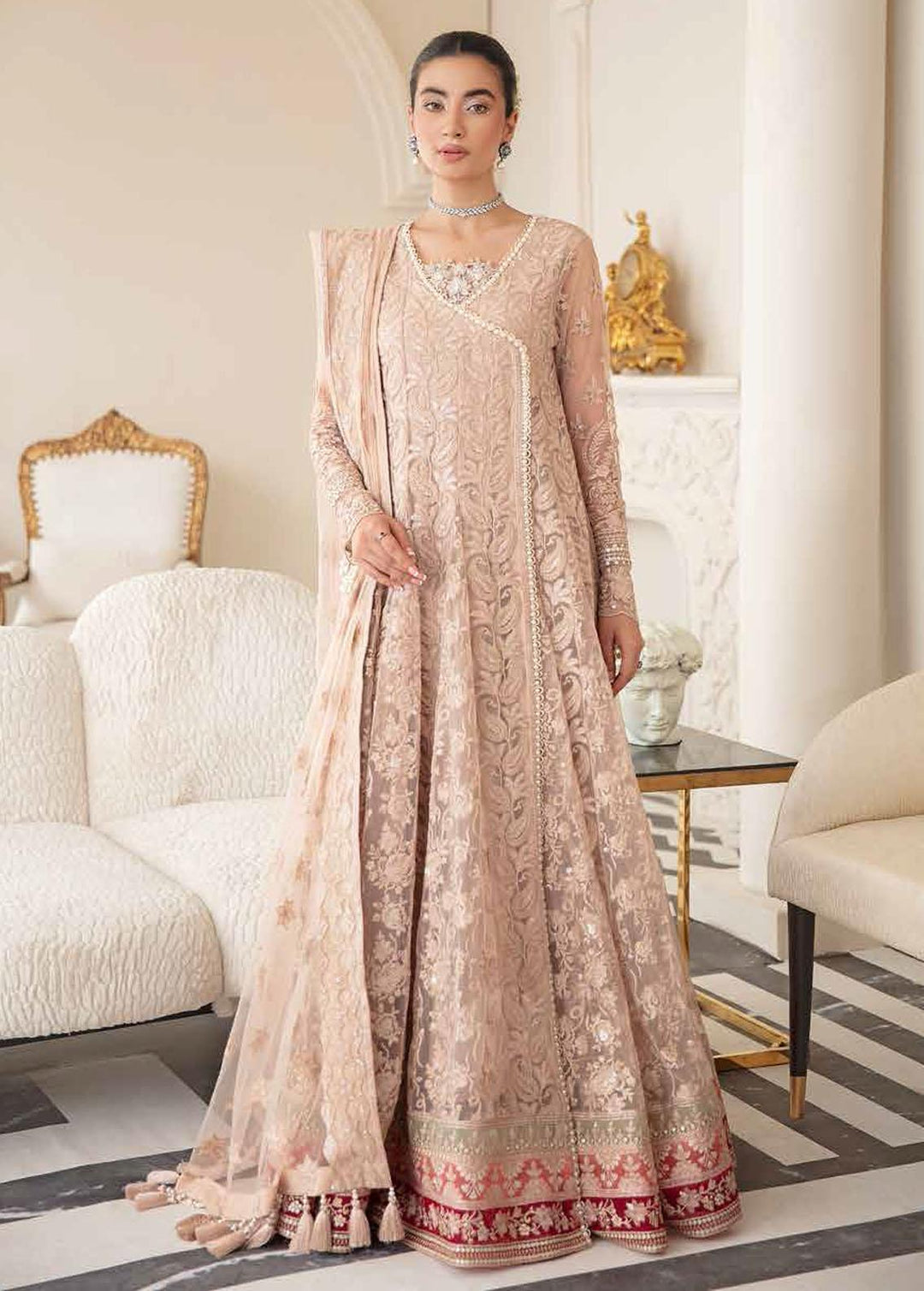 This Serene Premium collection is available in unstitched 3 piece suit with some eye catchy color form pinkish to a little bit golden mixture. High end embroidery is done at shirt Daman and at the corner of net dupatta and dyed trouser is included in this collection.