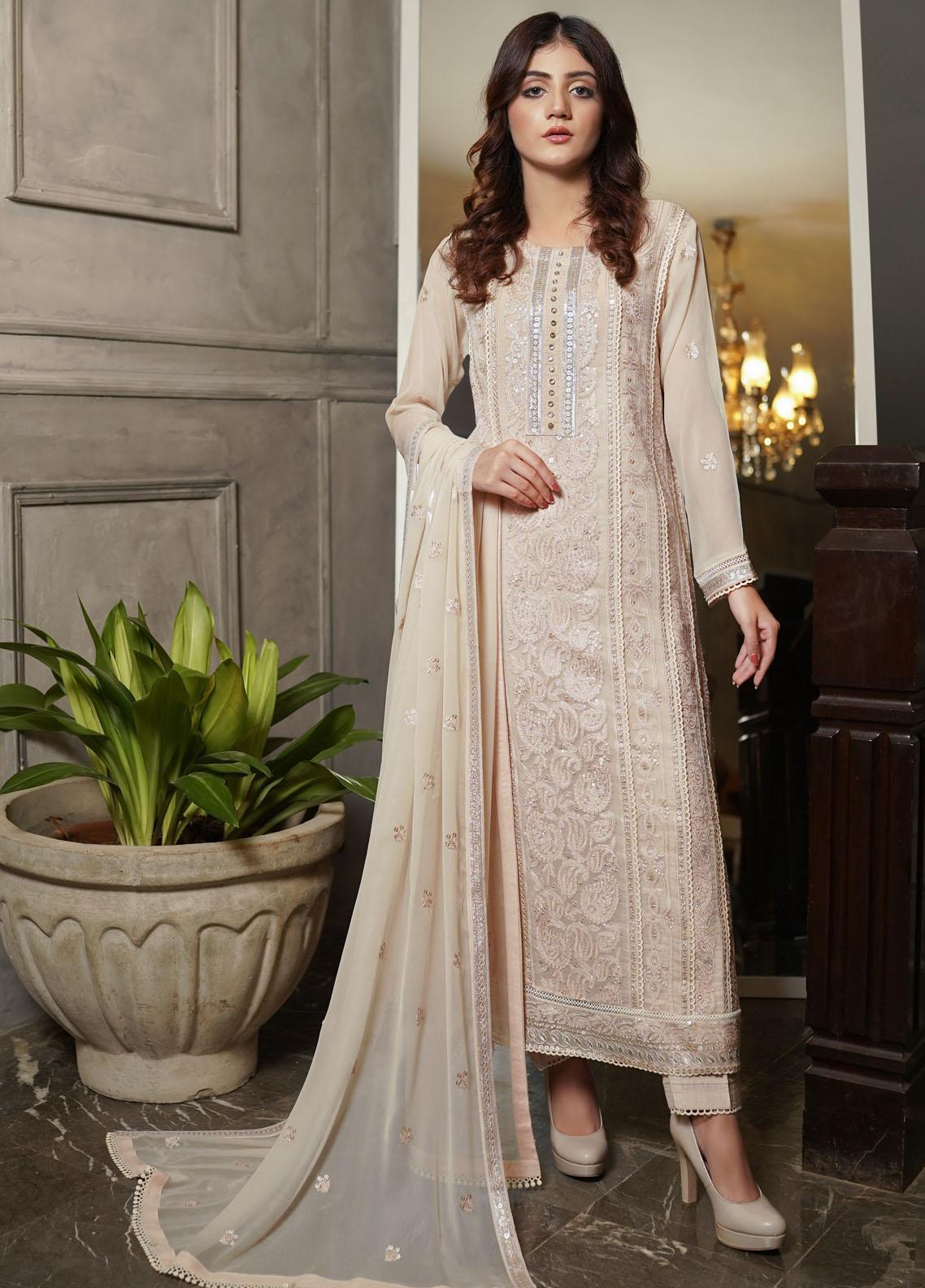 Shamooz Embroidered Chiffon Suits Unstitched 2 Piece SHM22UN Light Beige SU-003 - Luxury Festive Collection