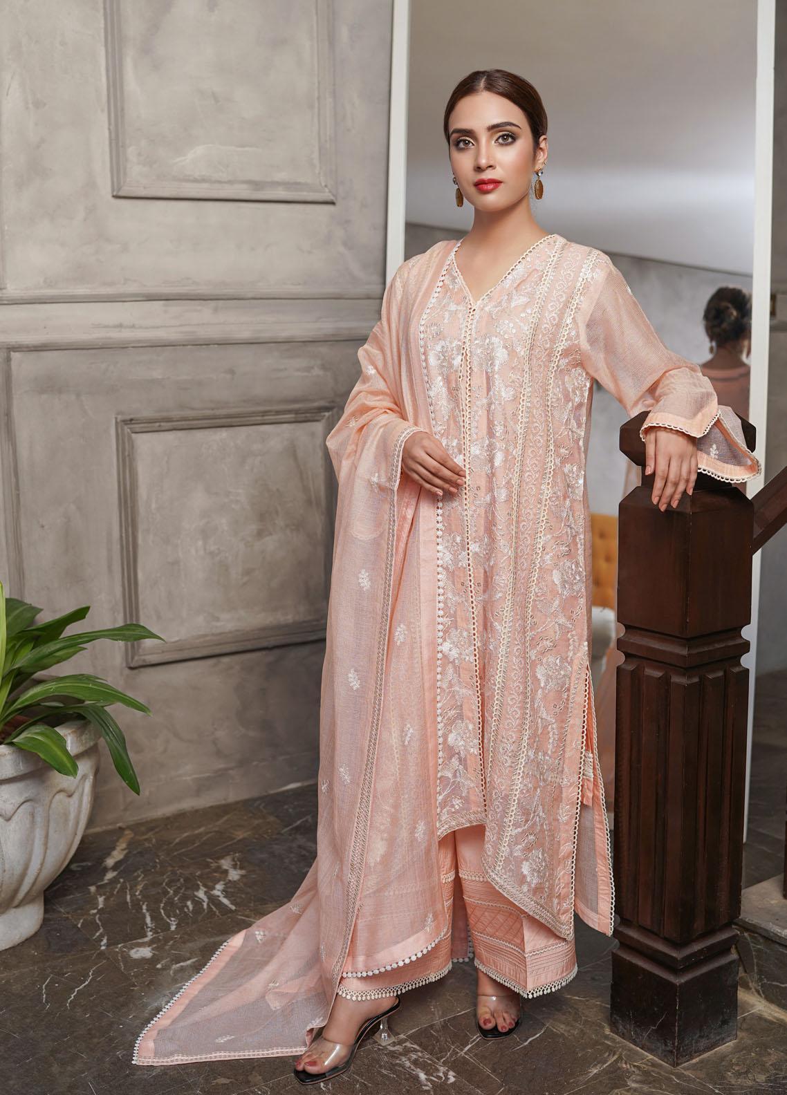 Shamooz Embroidered Khaadi Net Suits Unstitched 2 Piece SHM22UN Peach SU-021 - Luxury Festive Collection