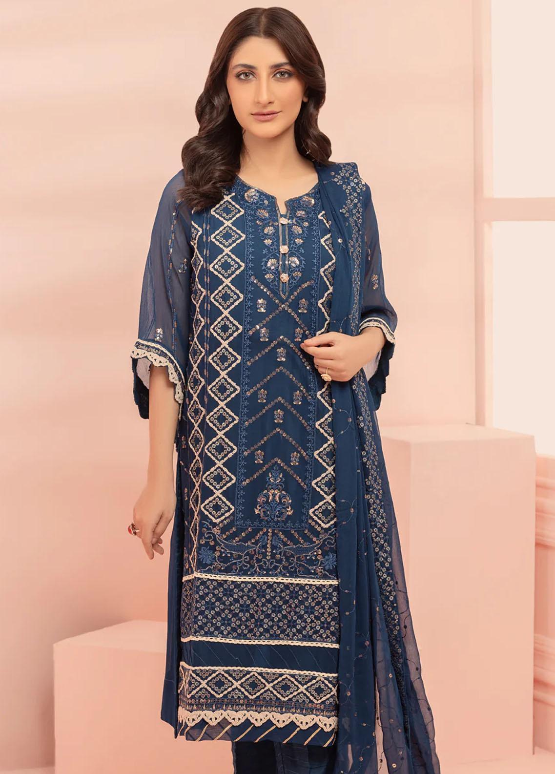 Embroidered 3 Piece Chiffon Suit for Women