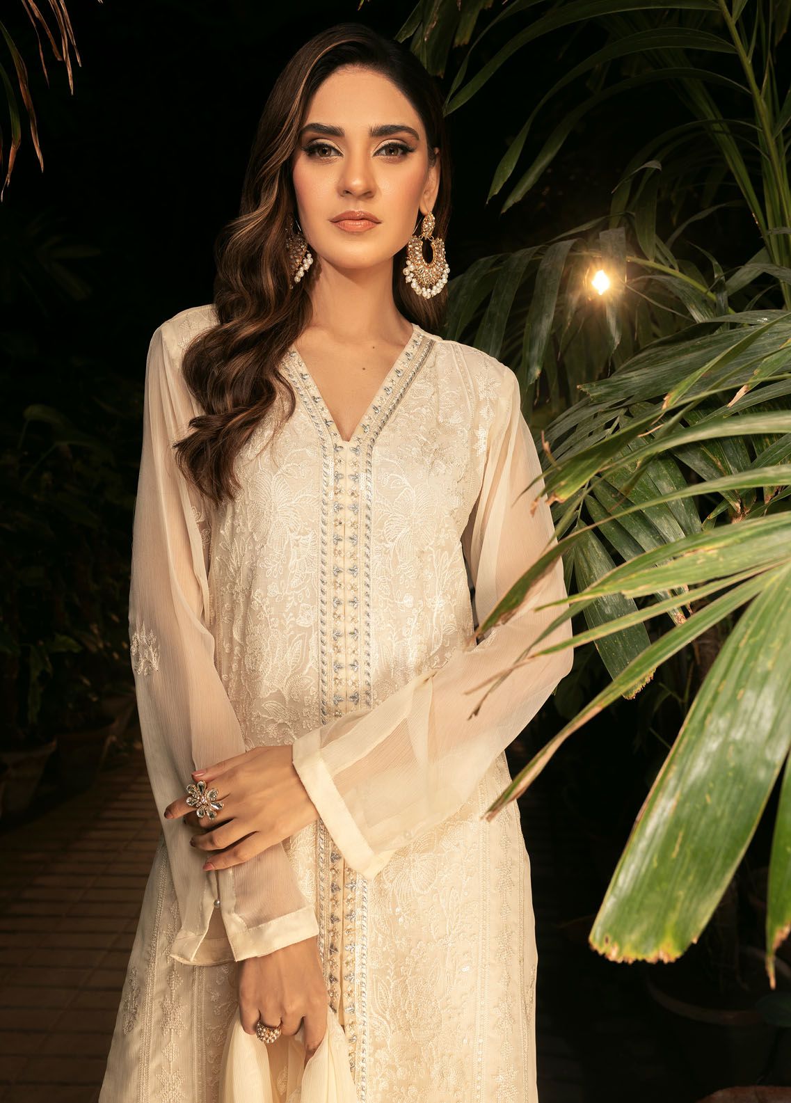 Fabric : Chiffon Description : Hand - Embellishment with Embroidery Chiffon Duppata and Raw Silk Trouser