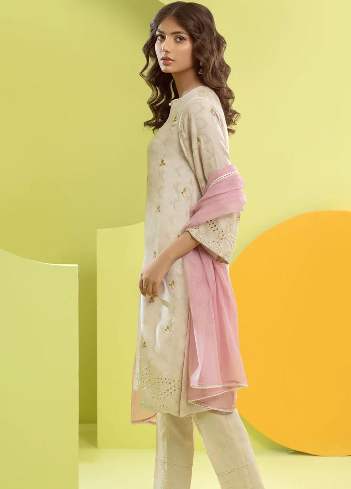 3 piece StitchedEmbroidered Cotton Jacquard Shirt Cotton Trousers Embroidered net dupatta.
