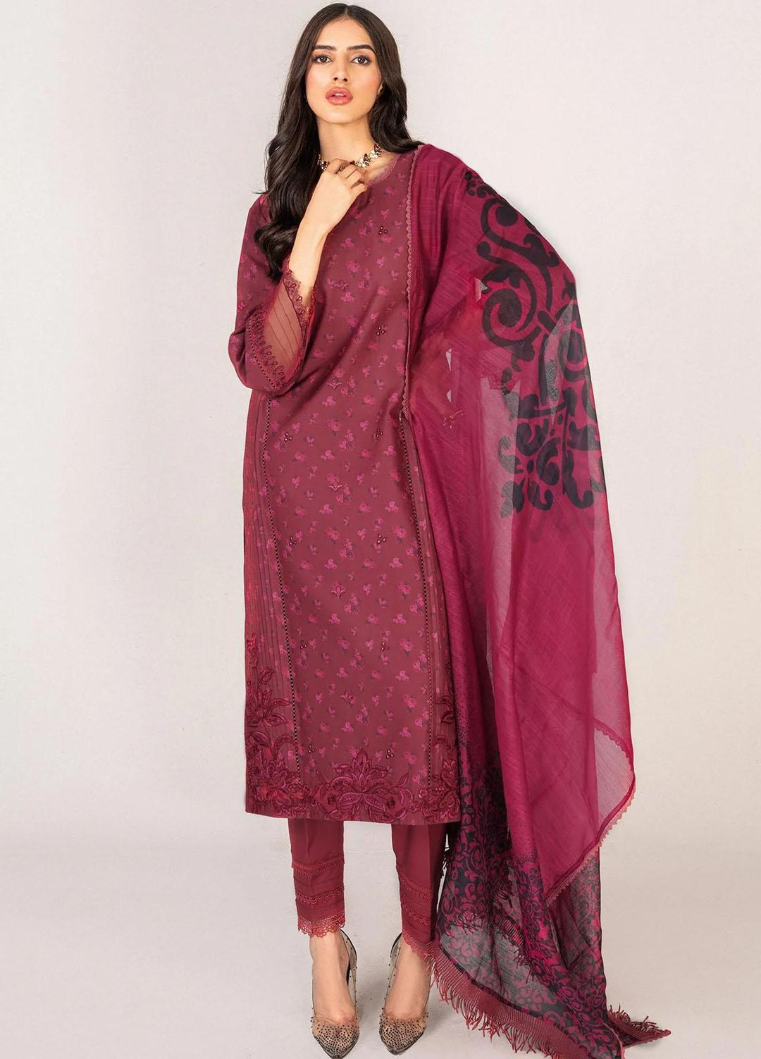 Serene By Shazme Embroidered Lawn Suits Unstitched 3 Piece SHZ23S SH-03 Majestic Maroon - Summer Collection