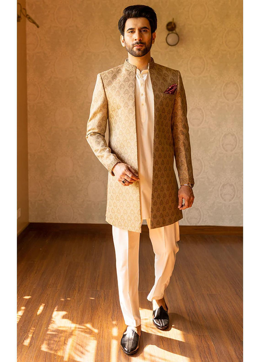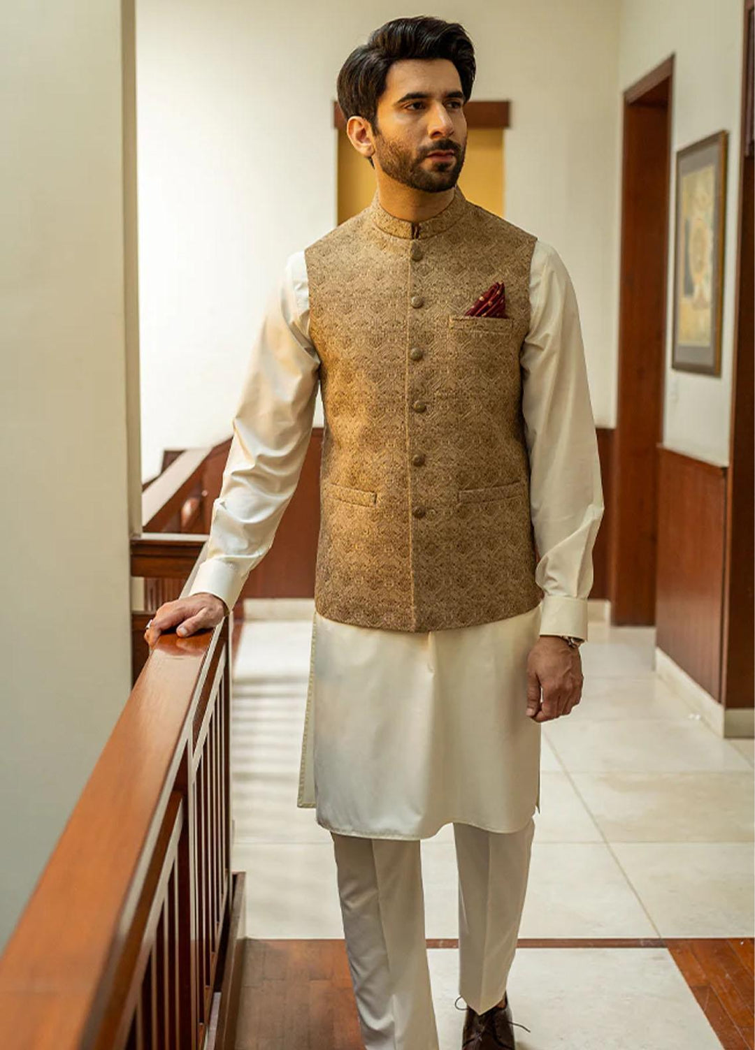 The latest collection from Stylish was a Shalwar kameez collection that came in as kurta shalwar paired with formal waistcoats. The whole collection was a decent single-colored range that offered a variety of waistcoats coming in different colors and designs. The intricate embroidery work on the jamawar waistcoats was the highlight of this collection. The unique design work made it a perfect dress code for desi weddings in Pakistan.