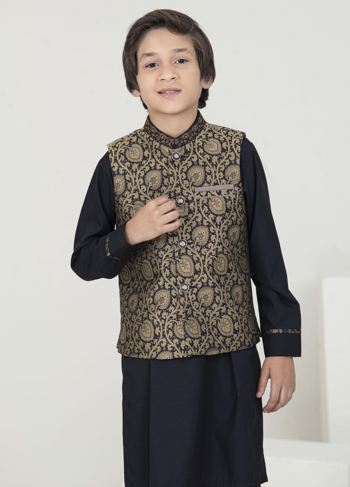 Festive Style Fancy Jamawar Waistcoat Suits for Kids