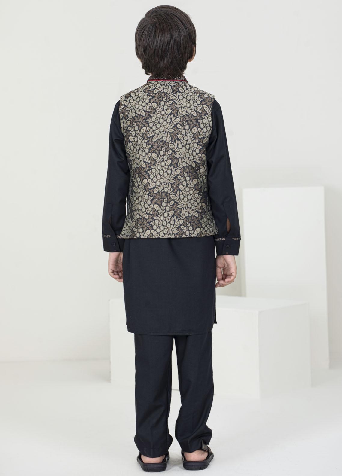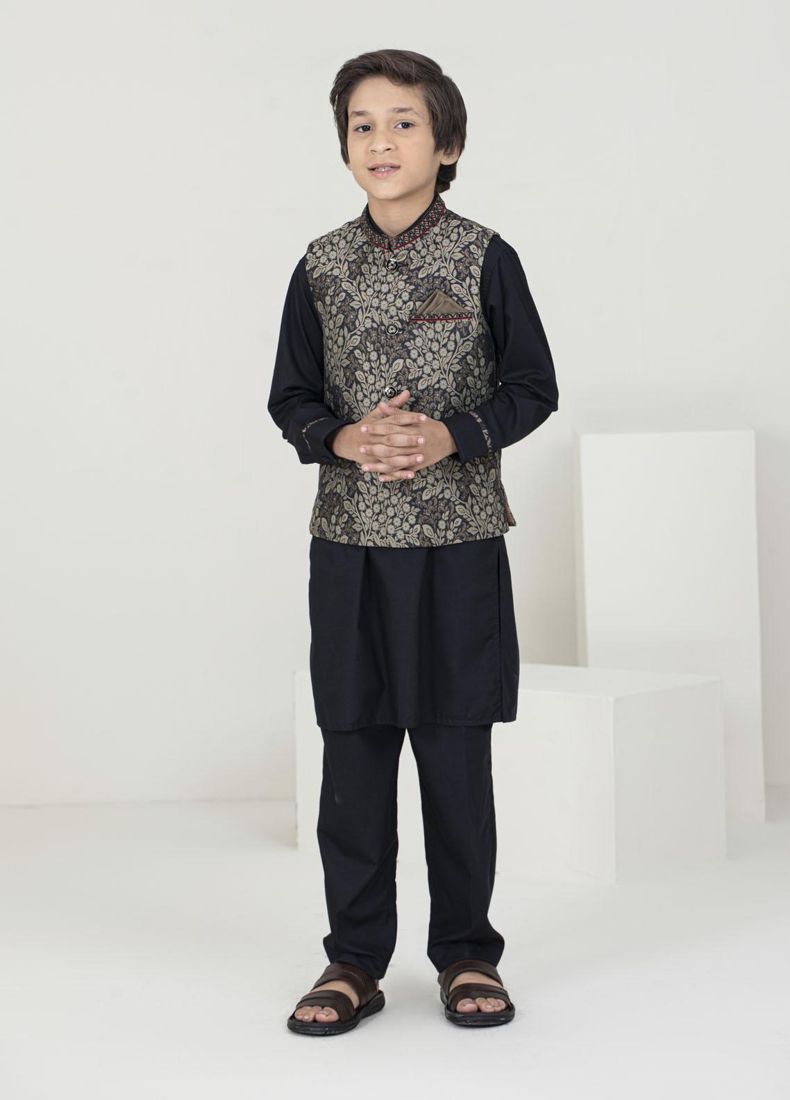 Festive Style Fancy Jamawar Waistcoat Suits for Kids